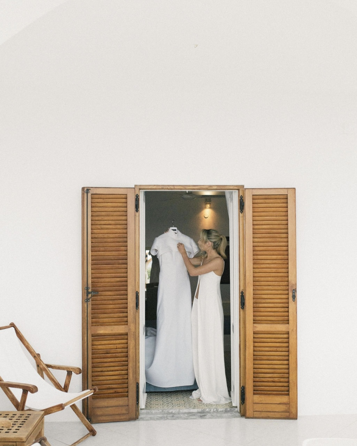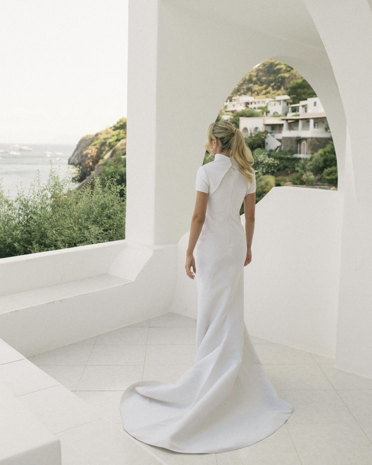 Claudia and Brad’s wedding unfolded like a story perfectly tailored to them – every detail, from the décor to the location, felt deliberate and personal. The celebration took place on the sun-drenched island of Panarea in Sicily’s Aeolian Islands, where the coast's natural beauty became part of the design. Soft, neutral tones, Le Labo candles, and sculptural vases created a serene, intimate, and effortlessly stylish atmosphere that allowed the island’s scenery to shine without distraction. Claudia’s bridal look, a custom J’Aton Couture gown that transformed throughout the day and was paired with Jimmy Choo heels, bespoke jewelry, and a treasured heirloom necklace, reflected both elegance and personality. Every element of the event felt intentional, from the precisely arranged ceremony stools to the long reception table lined with fresh figs and glowing candles to the handwritten love letters waiting at each place setting. From the quiet morning swim before the festivities began to the warm, joyful energy of the evening, the day had a rhythm of intimacy, light, and laughter.