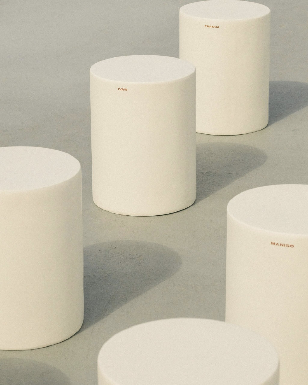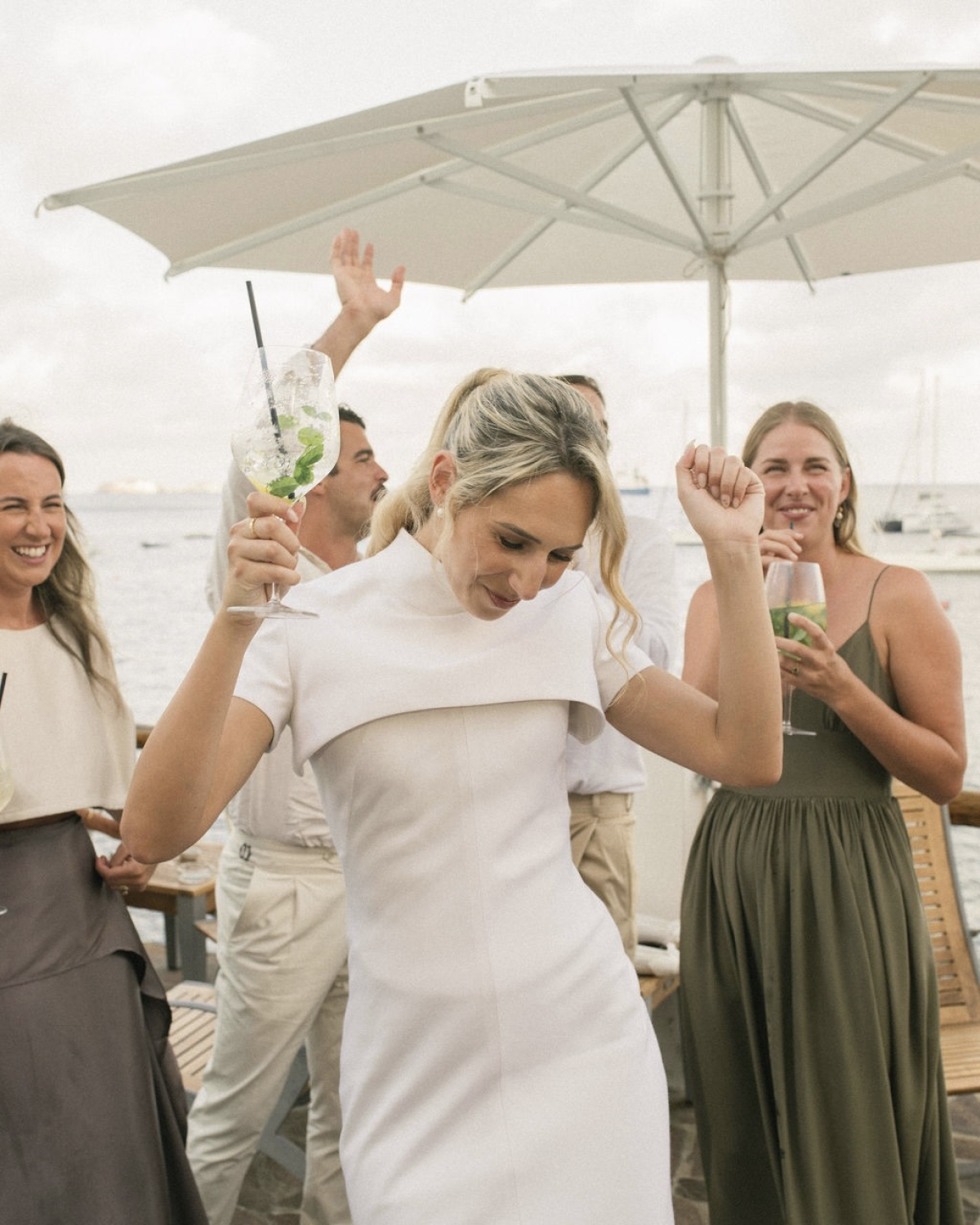 Our statement stools became the true protagonists of the day (and perhaps the most stressful part of the planning process). They arrived on the island just two days before the wedding—cutting it close—but were absolutely worth it. Each stool was intentionally spaced and delicately labelled with a guest’s name around the top edge. With only 35 guests, we wanted the space to feel intimate and considered. Our ceremony was led by our dear friend and priest, James Arblaster, whose presence made the moment feel personal and unforgettable.