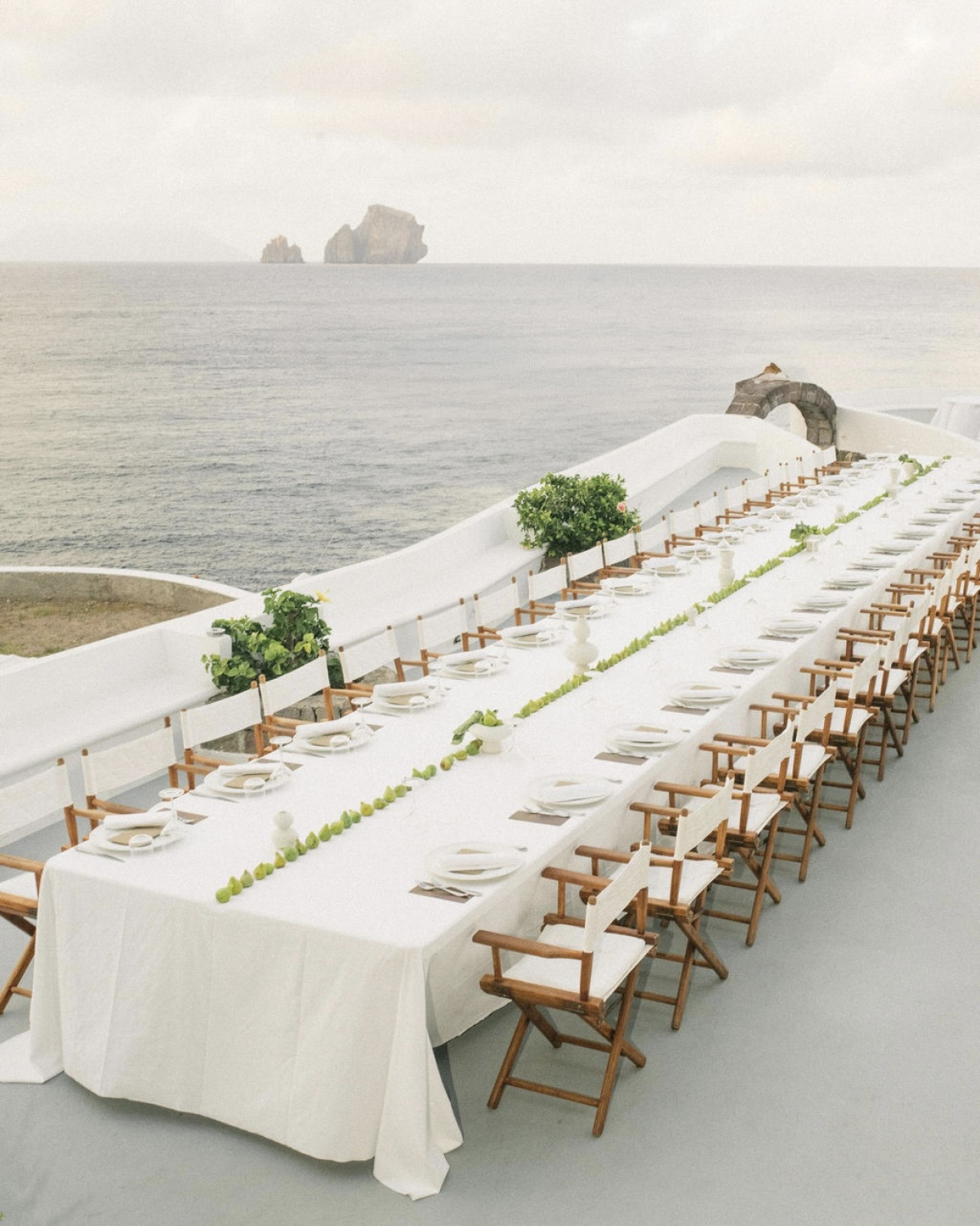 In keeping with our theme of intentional minimalism, the reception space was designed without flowers—allowing the natural beauty of the island to take centre stage. One side opened to the sea, dotted with neighbouring islands, while the other faced the mountain of Panarea—the best of both worlds.