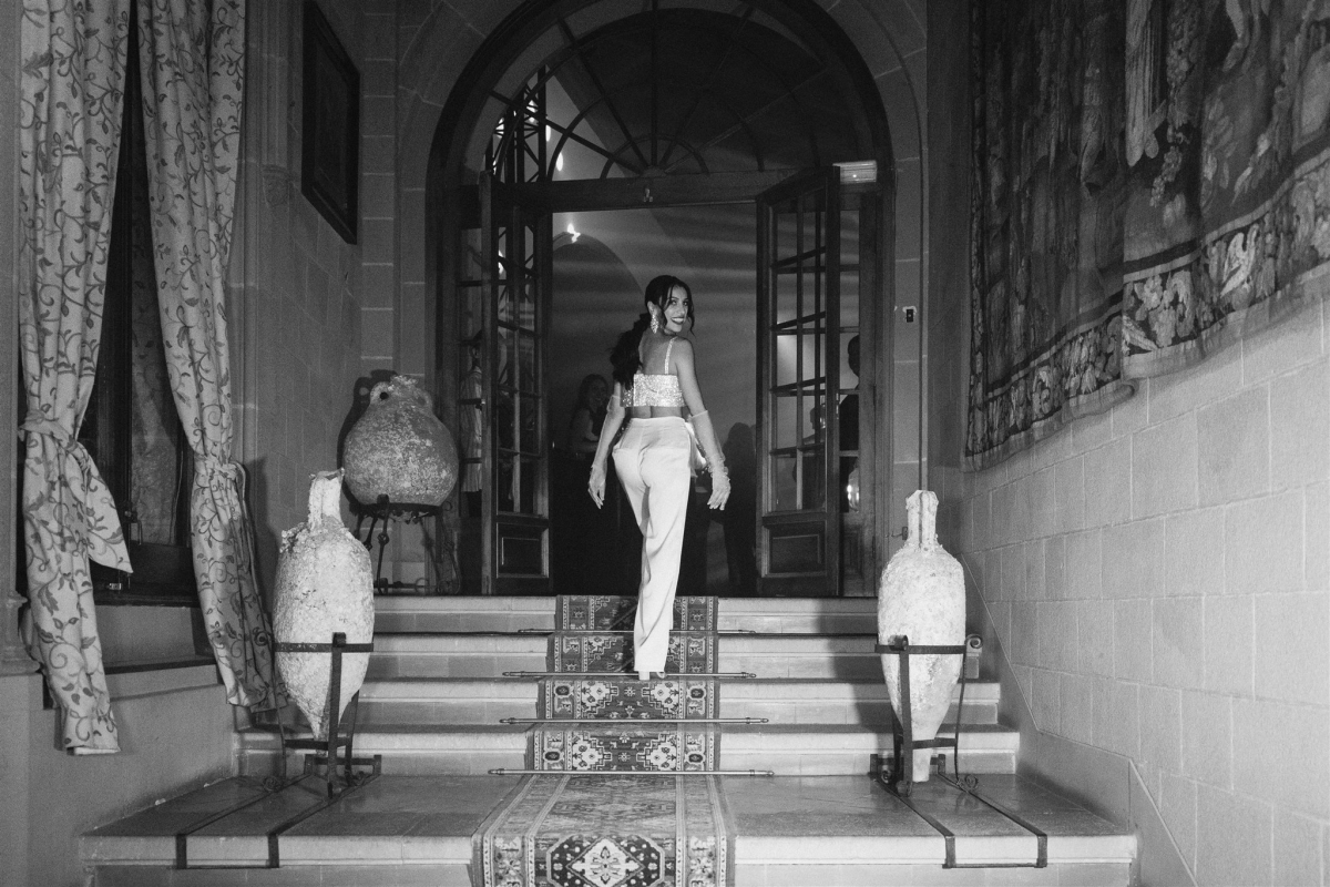 As the attendees approached the magnificent venue of La Baronia, near Barcelona, they were greeted by the gentle embrace of the surrounding greenery. The rustic charm of the place was instantly evident, and it set the tone for a wedding that would undoubtedly be both personal and unique. The venue hosted a grand imperial table as its centerpiece. Dressed in a simple white tablecloth, the table displayed an attention to detail with mirrored name inscriptions by each plate. This clean and refined design was accentuated by the use of warm fall flower arrangements, introducing a pop of color against the venue's green backdrop.