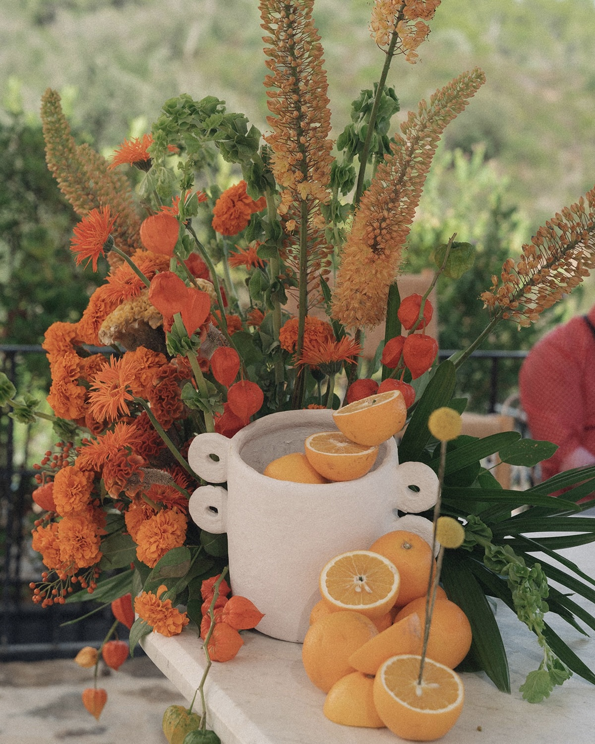 The bartenders wore custom-made aprons from Luna’s Bartending, the bartending business my little sister, Luna, runs. Cocktail hour took place on the top terrace, overlooking the vast landscape and the sea beyond.