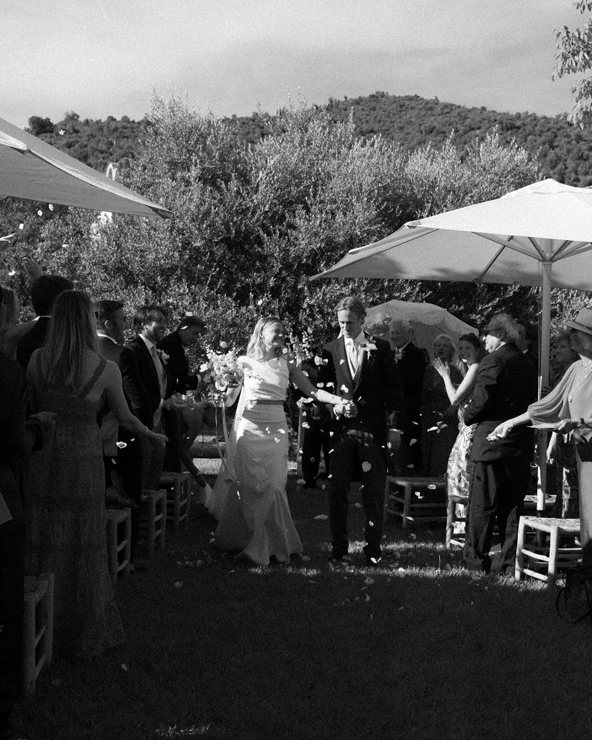 The ceremony took place in the garden next to the vineyard. Jan-Willem walked out with both our families and our bridal party, with his mom leading the pack. He walked out to one of his favorite artists, Marcus King. Before I entered, our two nephews brought out the rings, and our three little nieces scattered flower petals. Having been born in Brazil, I walked out with my dad to an incredibly groovy Brazilian song called “Oba, Lá Vem Ela,” which perfectly translates to “Look, here she comes.”