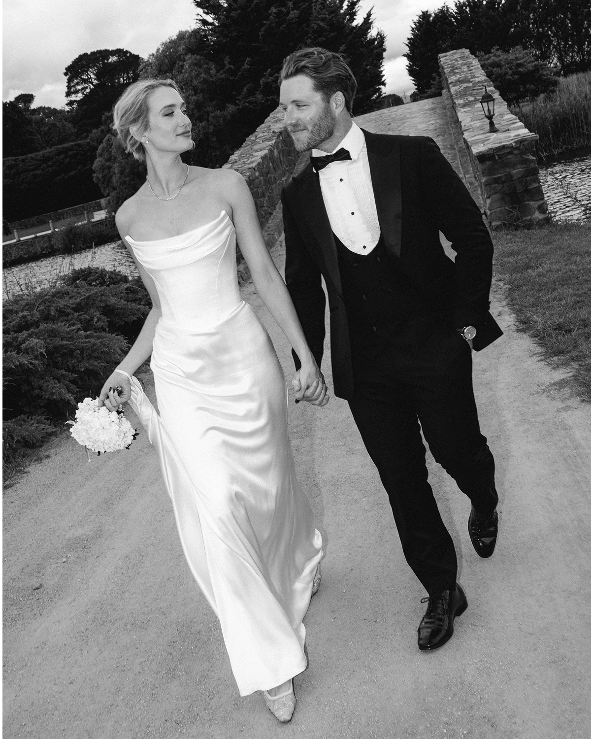 A charming affair in the Australian countryside, Jenn and Ben's wedding at Mona Farm was carefully designed to feel immersive and deeply personal. The ceremony was intimate and relaxed, with organic, sculptural floral designs by Film and Foliage enhancing the estate's stunning landscape. For the reception, the couple transformed a marquee with draping and lighting to create an ethereal atmosphere that seamlessly blended the lively indoor and breathtaking outdoor spaces. A playful touch came in the form of a seating chart that featured guests’ nicknames, adding to the warm, familiar energy of the evening. Prioritizing time with their guests over rigid traditions, they set the tone for a romantic celebration that felt effortless, joyful, and entirely their own.