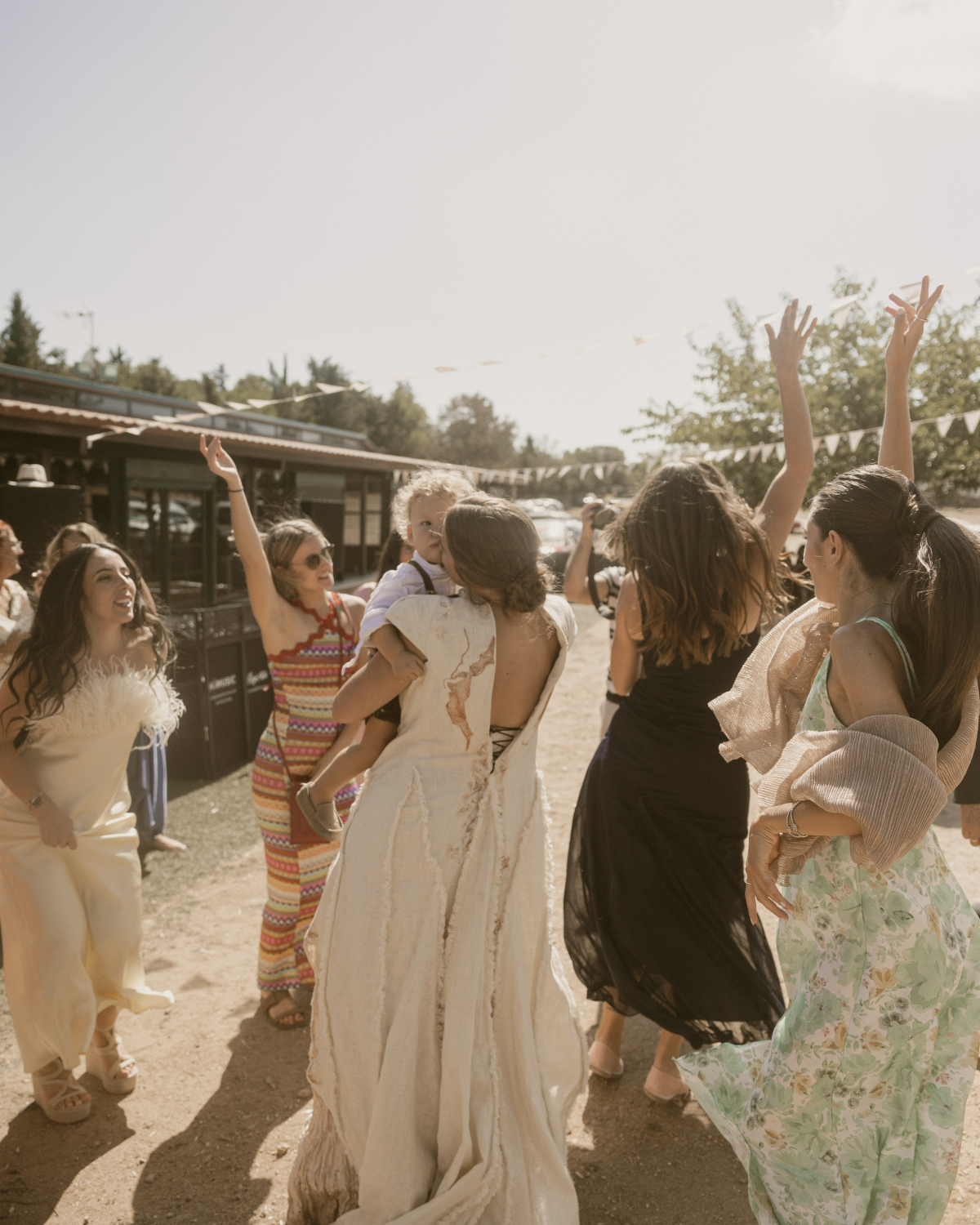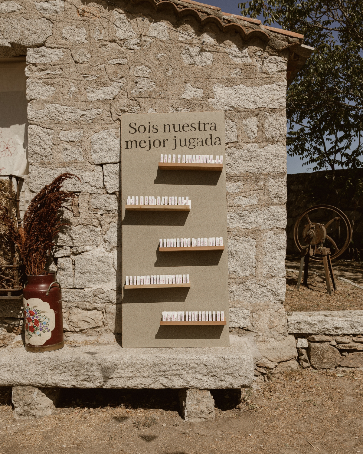 We wanted people to have a good time—a day designed for enjoying ourselves together, without too much formality, but with that magic we had seen at so many weddings. In the end, the ones we liked best were always those with an emotional ceremony where the bride and groom were surrounded by their loved ones and enjoying each other’s company. We didn’t want tables or endless meals; we wanted people to mix, not just stick with their usual groups. We wanted to emphasize the music, the little details, and above all, to see ourselves reflected in everything that was there.