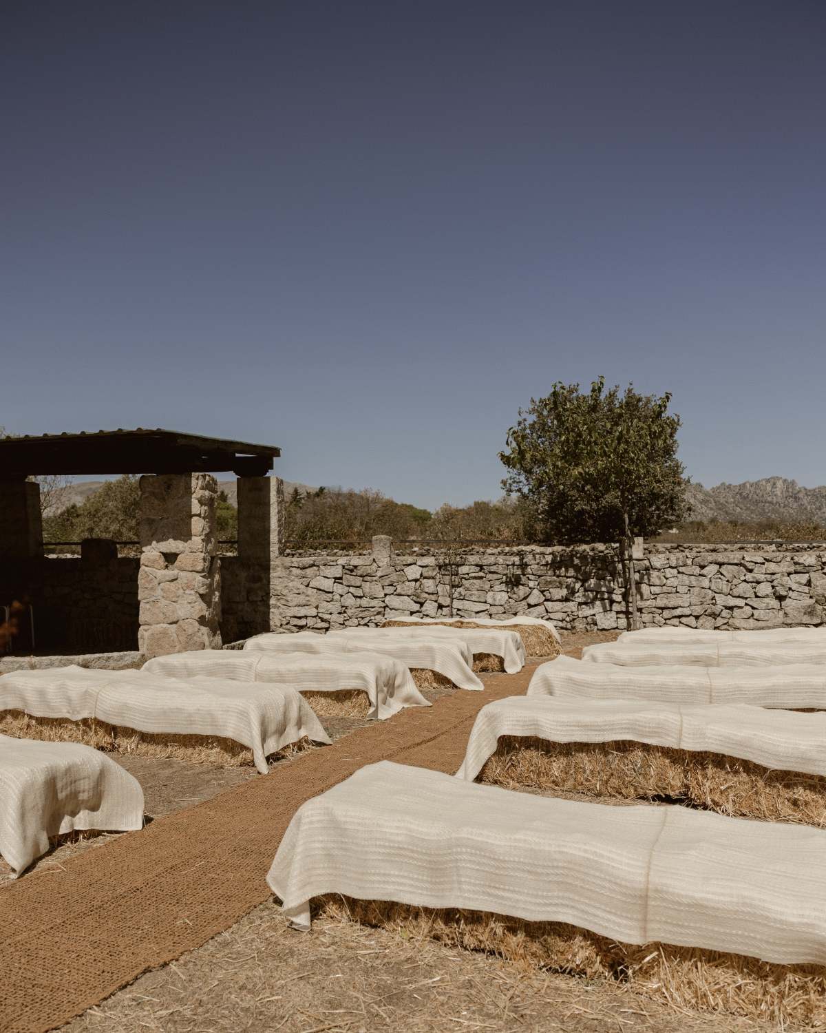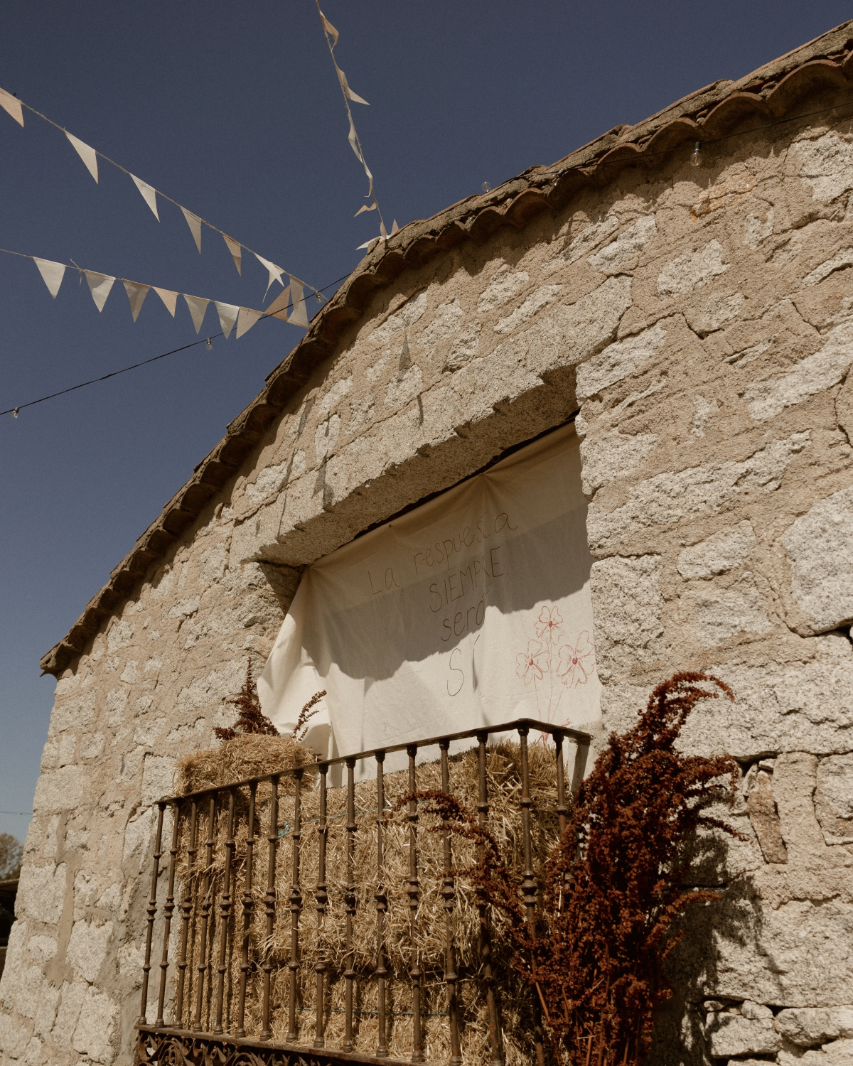 The ceremony was officiated by my best friend. The space was tiny but perfect. We sat the guests on bales of straw, and the designer of the outfits made us some fabric flowers to decorate. A couple of friends spoke, as did Sergio’s mother and my sister. Our grandparents (both around 90) brought us the rings. I really like it when children bring them, but we wanted to give our grandparents the spotlight.