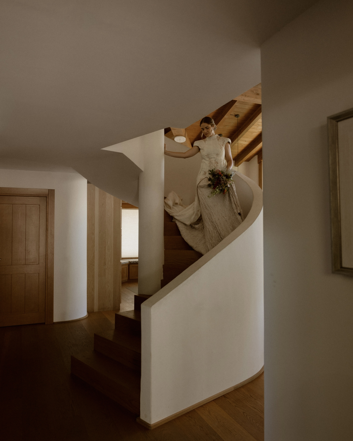 Guadalupe and Sergio’s wedding unfolded like a breath of warm summer air – raw, intimate, and effortlessly beautiful. Their celebration bloomed in an untouched countryside backdrop, transforming a quiet rural space into a living, breathing work of art. Instead of traditional décor, the couple embraced the natural landscape: copper-toned branches gathered days before, minimal florals, and thoughtful handmade details that allowed the venue’s wild charm to shine. Every corner felt intentional, personal, and deeply theirs. Guadalupe set the tone from the moment she appeared in her hand-painted linen cape and rose-toned dupion silk gown. Sergio matched her energy in a bespoke toasted-wool suit with subtle copper accents, connecting their styles in a quiet, poetic way. And while most weddings follow a familiar rhythm, theirs chose an entirely different beat. Forget a formal reception – this celebration shifted into a live concert in a round village plaza, where guests danced under the open sky, pulled-pork burgers in hand, and music flowing long into the night. It wasn’t just a wedding – it was a living celebration of creativity, community, and the kind of love that feels both grounded and magical.