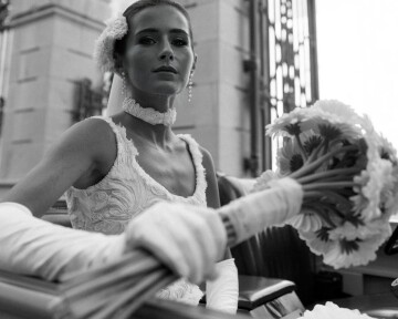 I loved the lace so much that I envisioned the headdress and choker in the same fabric. That’s when I approached Isabel Terroso, a true artist in her field. I explained my vision for a choker and a side headpiece to complement the dress and make it even more special. I barely had to finish explaining before she not only understood my idea but improved it brilliantly. I also decided to wear kidskin gloves, tailoring them to fit my arms perfectly. They were so snug that I couldn’t wear rings with them, so I waited until after the cocktail hour to put them on. The gloves were long, reaching above my elbows, and made from a very thin material that gave them a sleek and elegant look.