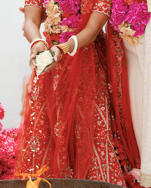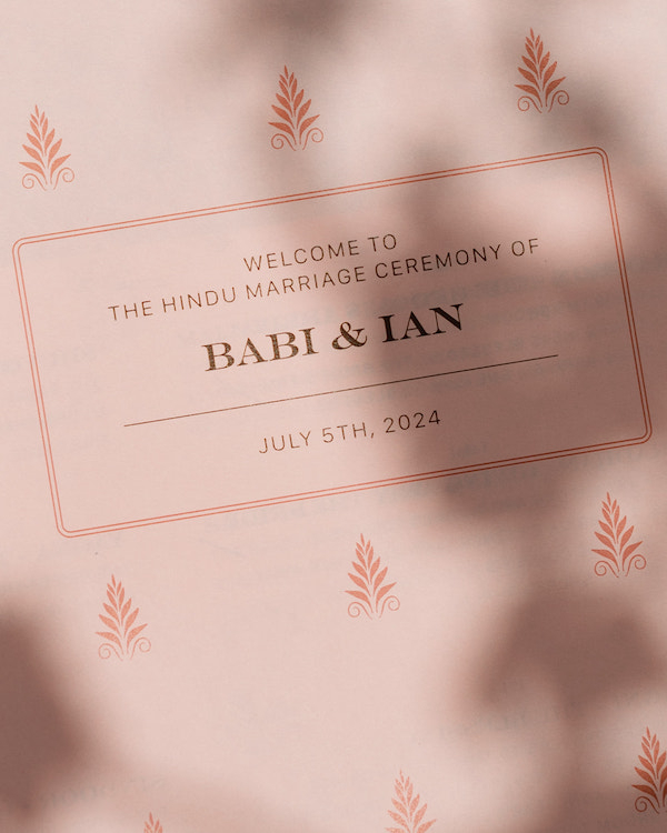 We knew we wanted to have two weddings - a traditional Hindu marriage ceremony to celebrate my heritage, and a more typical Western ceremony where we could exchange vows. As guests were traveling a long distance to the wedding, we decided to split the celebration across separate days, in addition to hosting a welcome party and a post-wedding beach party. We wanted guests to feel our love for each other throughout the long weekend. We picked two focus words – “romantic” and “playful” – to help us design wedding events that felt distinct yet complementary. Whenever we made wedding decisions, we returned to these two words as a guiding principle to ensure that the wedding really felt like us and our love.
