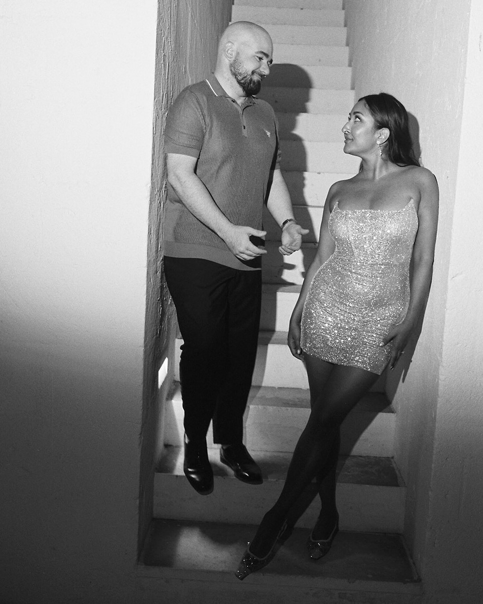 The tears immediately started flowing when we reached the rooftop and I saw that he’d set up a beautiful table filled with flowers, candles, and a bottle of champagne. Ian popped the question, and we toasted against the most incredible sunset. We then celebrated with a private dinner before FaceTiming our families. It was beyond perfect.