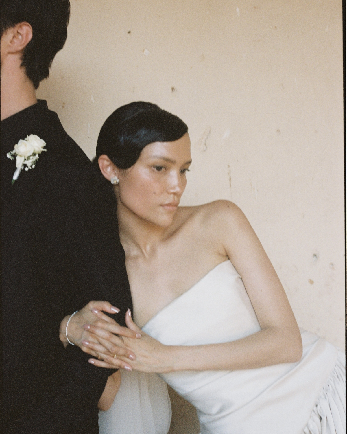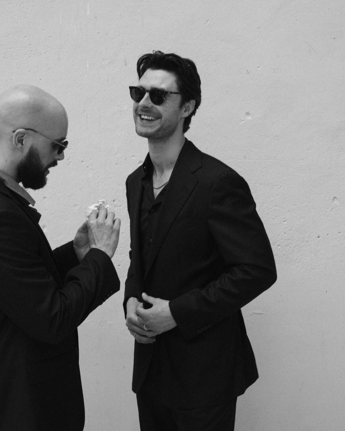 He actually asked me what I would like, and I told him an all-black look would be nice on him. So, we went to Suit Supply and got a suit custom-made. I wanted his shirt to also be a little relaxed, so it was unbuttoned at the top to pair with a nice black suit. He was groomed by Mikey Caputo, who is my Maid of Honour’s fiancé, and Jessica also did some makeup/skincare on his face as he got ready. He looked very good.
