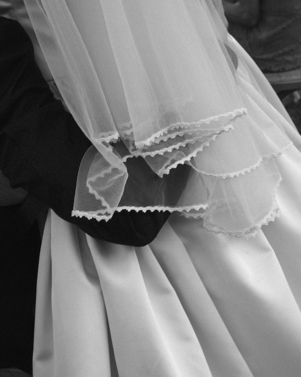 Before I got pregnant, I had a very simple dress in mind, but that changed after I found out I was pregnant, as I didn’t know how my body would look after having a baby 12 weeks before the wedding. My best friend, Oscar (Olima Studio), who’s a designer and who designed my dress, had a few ideas. So, we collaborated on what we loved and felt was best and ended up with a corset top and a petticoat bottom half. We went fabric shopping together to buy the silk for the dress in Los Angeles, and he made the corset himself! He also designed my prom dress 15 years ago, so this was really special to me. His grandmother, who I call Abuelita too, helped him sew it all together, and his assistant and friend (Taylor & Joe) helped him. Also, we would FaceTime every week to get the exact measurements up until 6 weeks before the wedding to set the corset. It fit so perfectly.