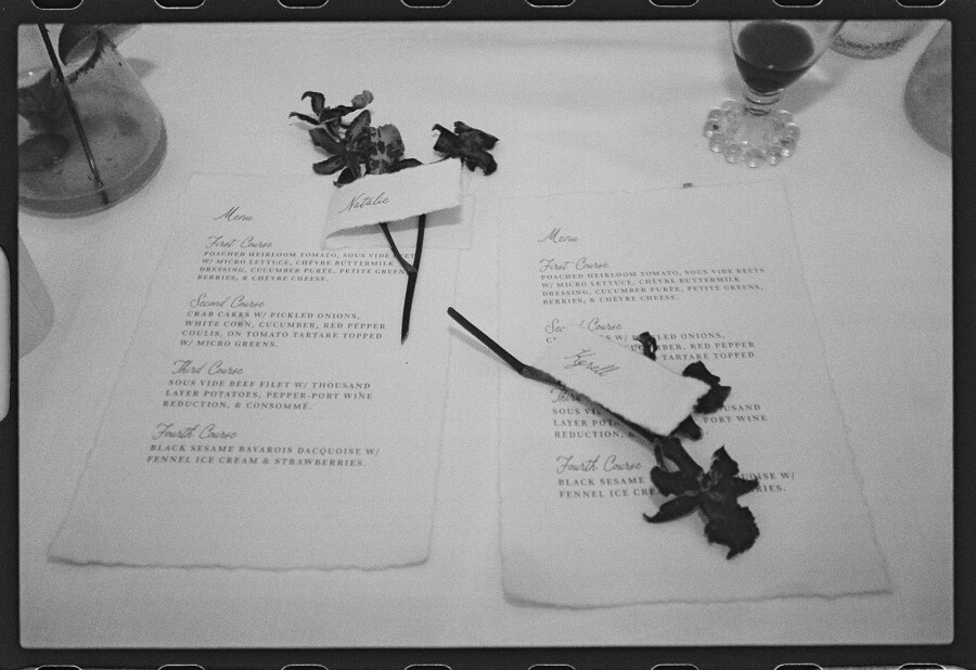 We worked closely with Chef John and Tiphani to curate a menu that felt like us — starting with sous-vide beets with chèvre buttermilk dressing, followed by crab cakes over tomato tartare, a perfectly cooked beef filet with thousand-layer potatoes, and ending with a black sesame Bavarois Dacquoise and fennel ice cream. Our parents and siblings gave heartfelt speeches that brought us to tears before we cut our pistachio-fig cake to “Me Formidable” by Charles Aznavour. We ended the night dancing under the string lights to “Best Part” by Daniel Caesar ft. H.E.R. — the perfect close to an evening that felt timeless and entirely our own.