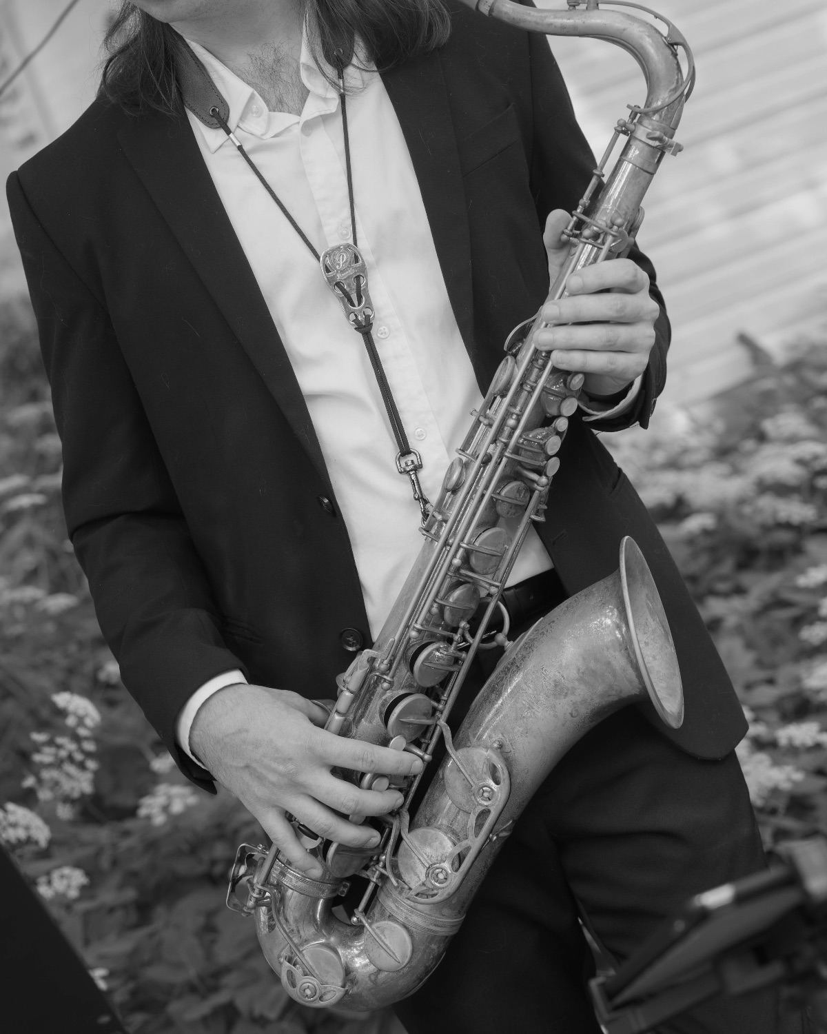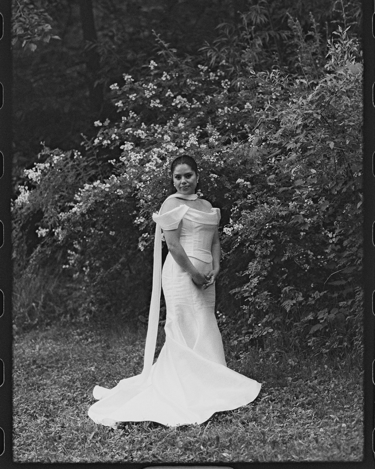 Our ceremony took place on the grounds, surrounded by trees and a pond with ducks, amid a mist of fresh blooms that looked like they were growing straight from the earth. Kyrell’s dad officiated, and his grandmothers were our flower girls, surrounding us with love alongside our parents, siblings, and grandparents. We walked down the aisle to “Godspeed” by Frank Ocean, performed live by a trio of piano, violin, and saxophone — creating a truly magical soundtrack. We also honored family traditions: our mothers placed the lasso, we lit a white Oaxacan unity candle used in traditional Mexican weddings, and we jumped the broom to symbolize the start of our life together.