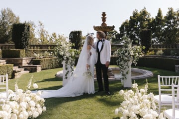 Lauren and Jack's wedding at the timeless Greystone Mansion in Beverly Hills was nothing short of magical, combining European elegance with Californian sophistication. The ceremony took place on lush green lawns, with aisles lined with hydrangeas and white roses, while ethereal drapery swayed gently as the couple exchanged vows beside a fountain centrepiece. At the reception, long tables adorned with delicate Italian lace set the scene for a night to remember. Lauren looked radiant in a sleek gown with an extended train, while Jack matched her elegance in a classic black and white suit that exuded sophistication. Together they brought a slice of Italy to Los Angeles, creating a wedding celebration that was both nostalgic and utterly enchanting.