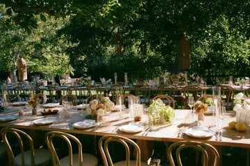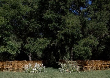On a beautiful sunny summer evening in a stunning corner of California, between the picturesque towns of Carpinteria and Ojai, Katie and Andrew's dreams came true. The brief; an intimate summer soirée, a sophisticated but personable affair that in true Californian fashion, put good vibes first and foremost. Set on a sprawling private estate on the slopes of Casitas Pass, the couple wed in a magical ceremony surrounded by luminious woodland greenery. The newlyweds exchanged their vows under the gentle rays of the sun, with only their nearest and dearest in attendance. The afternoon continued with an unforgettable reception where guests were treated to an open air tablescape beneath the canopies of swaying trees, and served up good tunes, tiramisu and espresso martinis. The bride chose two different outfits that perfectly highlighted her style: an exquisite lace gown by Monique Lhuillier for an enchanting ceremony and a custom-made corset by Ma Corsetiere for her second look, giving her an added touch of chicness. This one's etched in our hearts.