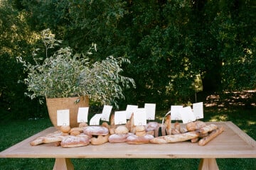 We got married at one of our best friends, Olivia's, private home on Casitas Pass – between Carpinteria and Ojai. Olivia's 60+ acres of land was our dream setting to make things "official". Our chuppah was constructed with olive branches and fruit from her land, and seashells filled with the olive oil she produces were spread across our dinner tables. Olivia officiated an intimate and heartwarming ceremony nestled under a covering of trees, where she shared stories dating back more than a decade.
