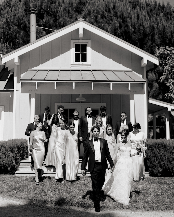 Every single detail was perfect, and we owe it all to the incredible and talented people we had in our corner. Kat and Brita from Little Creek Events took my flood of mood boards, spreadsheets and Figma mock-ups and created magic. Our photographer, Brandi Crockett, is filled with so much love that it really is no wonder that she spends her days capturing the sweetest wedding moments. And more than anything, Andrew and I are foodies. And there was no one else in the world who we wanted to cater our wedding more than Jennifer Naylor. Jennifer was the Executive Head Chef at Granita, a Wolfgang Puck restaurant in Malibu that my family had been regulars at my entire childhood. She quite literally invented the Smoked Salmon Potato Galette, my favorite thing on the planet, and I had to have it at my wedding. We served it at cocktail hour, and it was perfect. Hope, of Pigsty, filled the dinner table of our dreams with flowers and fruit, and Jeanette Getrost hand painted our stationary (which we fully intend on framing).