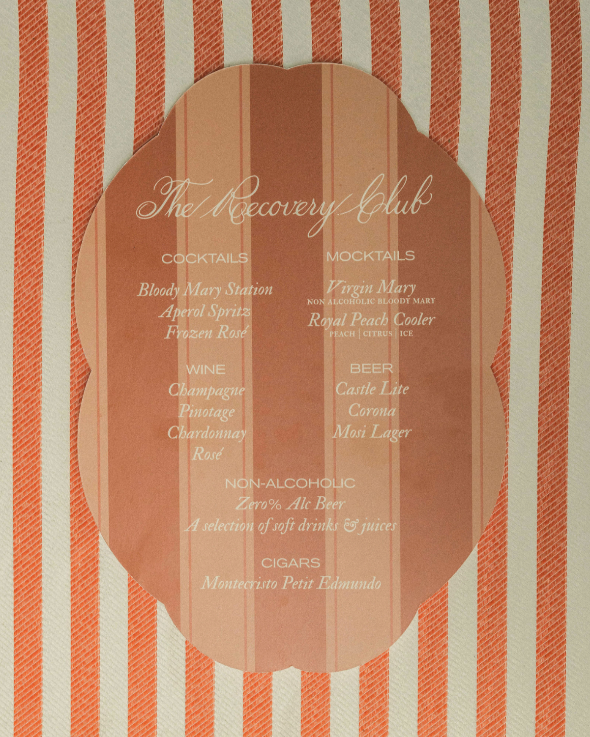 Most of our guests arrived at the Royal Livingstone on the same Airlink flight from Johannesburg, which was so full of our loved ones and vendors – including the Ndlovu Choir – that we arranged a surprise in-flight flashmob that had everyone cheering when the crew even announced our wedding. To welcome them, we prepared personalized gift packs with a note designed by BYV Studio linking to our wedding website, handmade Wayawaya tote bags and pouches engraved with our monogram and each guest’s name, embroidered caps for safari adventures, Zambian chocolate bars, sunscreen balms, and fun beaded bracelets reading The Rubys. Almost every detail was lovingly chosen by Jason and me just weeks before, with our guests in mind.