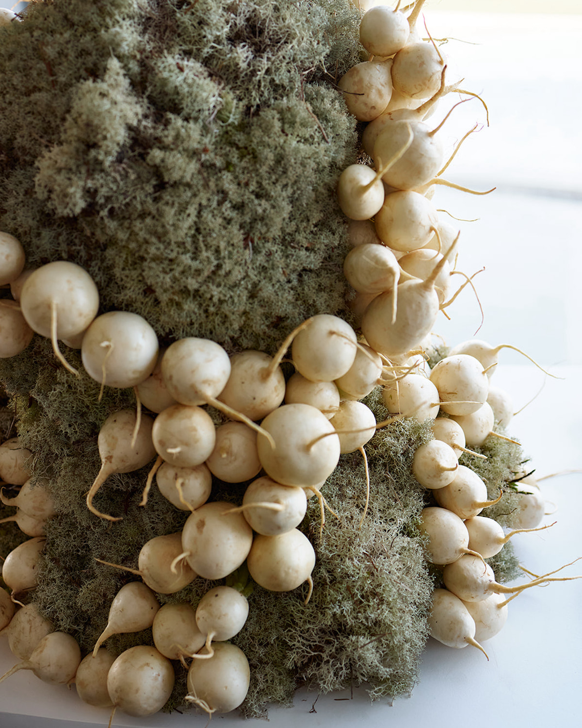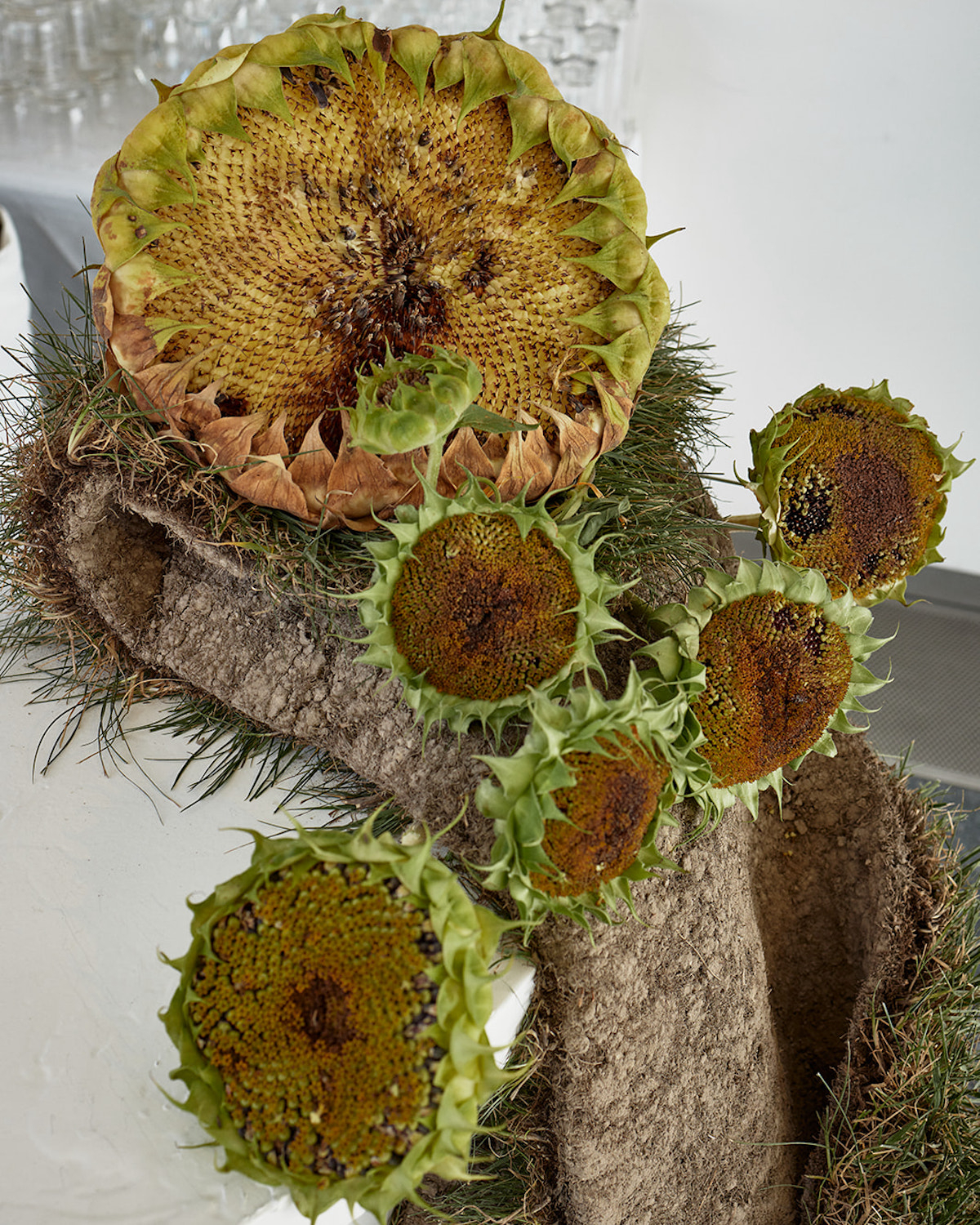Pomona Floral, led by the visionary Sarah, created sculptural arrangements that felt like installations—bold, sometimes bizarre, and completely breathtaking. The radishes. The kelp. The sod. Every conversation with her left us more excited than before, even when pivoting last-minute to include an aquatic arrangement just a week before the ceremony—much to Jeff’s chagrin.