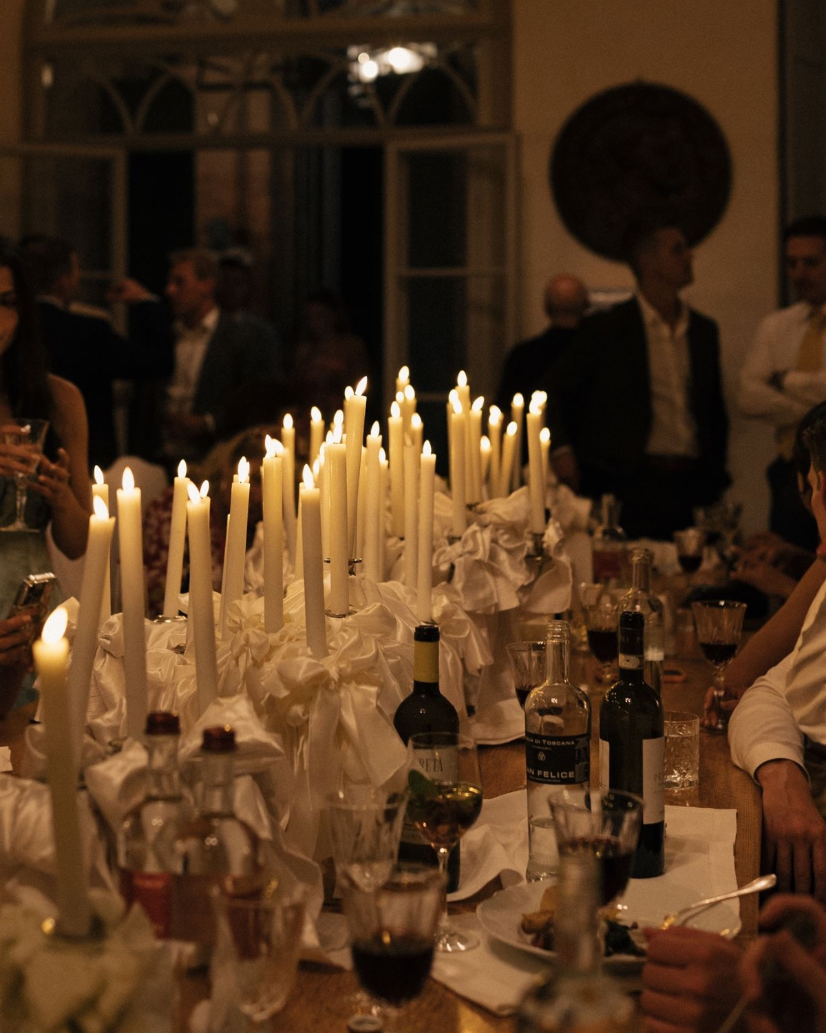 In the golden light of the Tuscan countryside, Karley and Justin exchanged vows at Villa Cetinale in Siena, Italy—a 17th-century estate that felt like it was destined to be part of their love story. Guests sipped Hugo Spritzes under climbing wisteria, while candlelit tables adorned with calla lilies and silk bows enhanced the villa’s storied architecture. From the handmade tortelli served at dinner to the saxophone DJ keeping the party alive well into the night, every detail embodied the couple’s vision, creating a celebration of love that was refined, intimate, and effortlessly romantic.