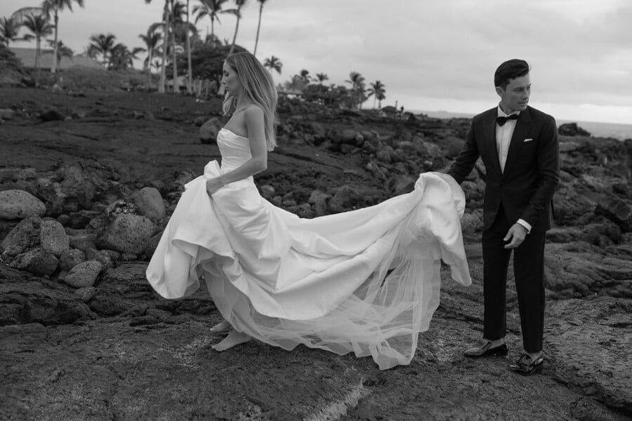 We planned our wedding in just seven months, and somehow every one of our first-choice vendors was available—it truly felt meant to be. Bianca Virtue captured the weekend with such an organic eye, preserving the quiet, in-between moments just as beautifully as the big ones. Morelife Films, who traveled from Australia as well, brought a playful, lighthearted rhythm to their storytelling that felt so true to us. Belle de Jour’s florals felt like a natural extension of Kona itself, and our planner, Kate Hickey, worked tirelessly to weave every element together with intention and care. Live music carried us through all three nights, each performance setting its own tone and energy for the celebration. Together, our vendor team created something even more beautiful than we could have imagined.