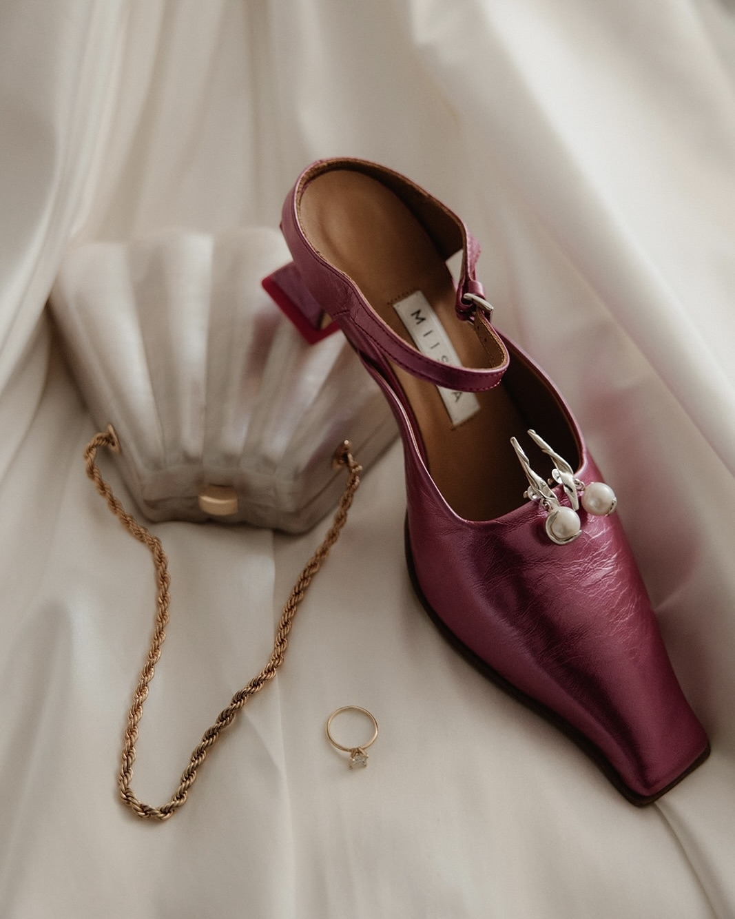 I wore two dresses, both designed in Panama by me and my dressmaker, Jean Mackens. I accessorized them with a statement necklace created by Sarah, a creative studio partner of mine. The necklace was made with freshwater pearls, and my earrings, also featuring pearls, were from Faris. My shoes were a vibrant pink from Miista.