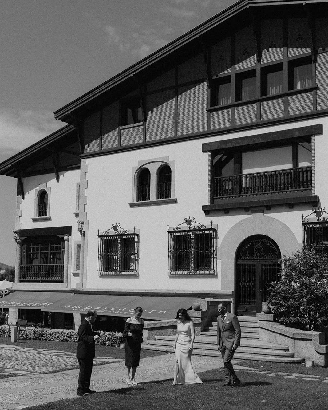 After the ceremony, we moved the reception inside the Olagorta restaurant. As architects, we truly appreciated the space, with its old wooden beams, floors, stairs, and ceiling, along with the furniture that complemented the lush green landscape visible through the restaurant's glass facades.