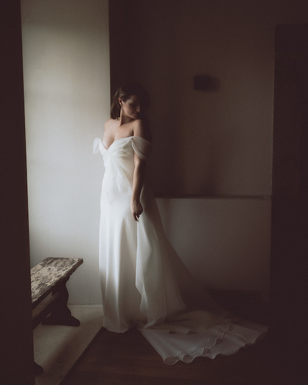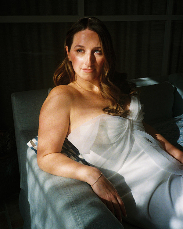 Finding the perfect wedding dress was more challenging than expected. I didn’t have a clear vision, but I knew I wanted something unique, timeless, and comfortable—without too much fuss. After months of searching, I came across The Brooklyn Dress from NewWhite. When I tried it on, it fit like a glove, was incredibly comfortable, and in that moment, I knew I had found exactly what I didn’t know I was looking for. Rather than a traditional veil, I opted for a long organza empire skirt—something I could easily remove to stay comfortable throughout the day but still adds some additional texture and layer. My best friend and jeweler made all of my jewelry with the exception of vintage pearl earrings from Andrews mom she got in Japan almost 40 years prior!