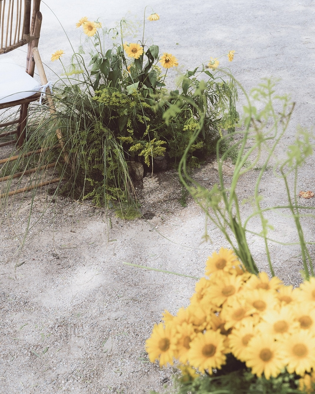 Caitie and Andrew celebrated a love story as unique as they are in the mesmerising surroundings of Portuguese nature and atmosphere. The ceremony itself was a breath of fresh air: lighthearted and engaging, it struck the perfect balance between sentiment and playfulness. The reception that followed was less about grandeur and more about connection – an elevated dinner party where family and friends felt truly at home. Caitie radiated elegance in her delicate off-shoulder dress and chic Jacquemus pumps, while Andrew turned heads in a bold ochre yellow suit. Together, they were the embodiment of effortless style and charm, setting the tone for a celebration that was as relaxed as it was unforgettable. Delight in a heartfelt interview with the bride and marvel at the exquisite floral arrangements crafted by the talented hands of our member, Oh, Maria Flores.