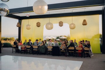 Set against the golden light and relaxed beauty of Santa Barbara, Josie and Nick's celebration was anything but traditional. It was a bold mix of cultures, colors and creativity that told their story not through words, but through every carefully chosen detail. From the architectural installation of chartreuse mesh to the lush grazing tables, this was a wedding where personal style met thoughtful design. Western flair collided with Brazilian vibes and the result was nothing short of stunning. The couple's fashion choices were equally memorable. Both dressed in bespoke suits, they brought an effortlessly cool energy to the day. Every moment of the weekend was a reflection of who they are – from the open flow of the reception to the deliberately unscripted energy on the dance floor. Here, discover more exciting details about their wedding planning, style and choice of vendors.