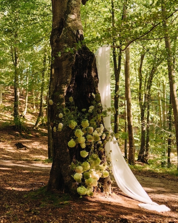 A breathtaking fusion of tradition and modernity, set amongst the enchanting woodlands of Northern Poland – the wedding of Antonia and Tymon. Held nearby the Baltic Sea at a stunning 20th-century venue, the celebration brought the charm of old-world Poland into a fresh, contemporary light with a whimsical essence. The ceremony, nestled in the heart of a vibrant forest beneath canopies of swaying trees and spilling golden light, creating an intimate and magical effect of dancing dappled light. Antonia first walked down the aisle in a chic, elegant gown by Danielle Frankel, but it was her second look crafted by a dear friend that truly stole the show – a unique, bohemian masterpiece crafted from traditional vintage Polish lace tablecloths, honoring the bride's heritage in the most unconventional way. This one has truly stole our hearts.