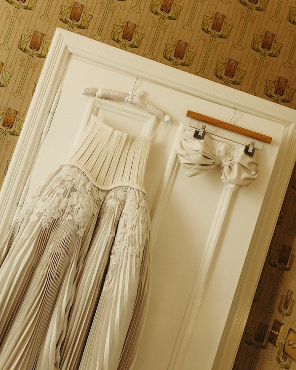 Tymon designed his own suit and got it made with his tailor in Bali. He wore vintage Maison Margiela shoes and instead of a bow tie, he wore a pearl choker from Vivienne Westwood. His watch of choice was a vintage Cartier Tank that he wore for the first time on our wedding day.
