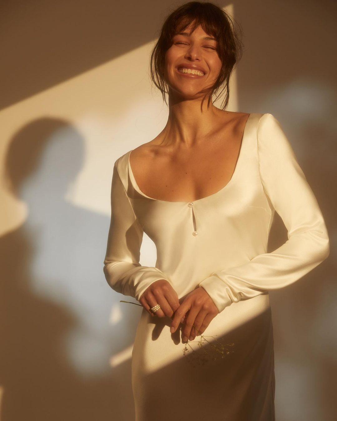 Opting for an intimate wedding means brides can enjoy the freedom to wear whatever they want without the judgement of guests outside their close friends and family. Intimate weddings are often more relaxed and slightly more bohemian in their styling, but this does not necessarily have to be the case. We suggest trying something simple: a silk dress or an oversized jacket will look stylish and will suit a small event perfectly. To spice up the look you can buy massive accessories, earrings or on-trend heels.