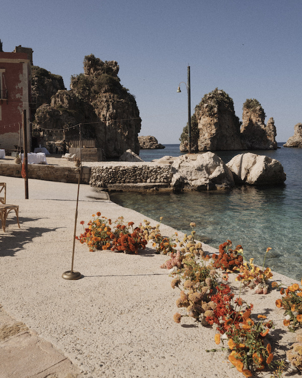 Our wedding was at Tonnara di Scopello, a historic estate nested on a sparkling limestone cove in the town of Scopello, Sicily. Scopello is an enchanting seaside village overlooking the Tyrrhenian Sea, with sweeping views of the dramatic rocky coastline and surrounding hillsides. We instantly fell in love with the venue when we first came across it, and we knew we had to make it happen.