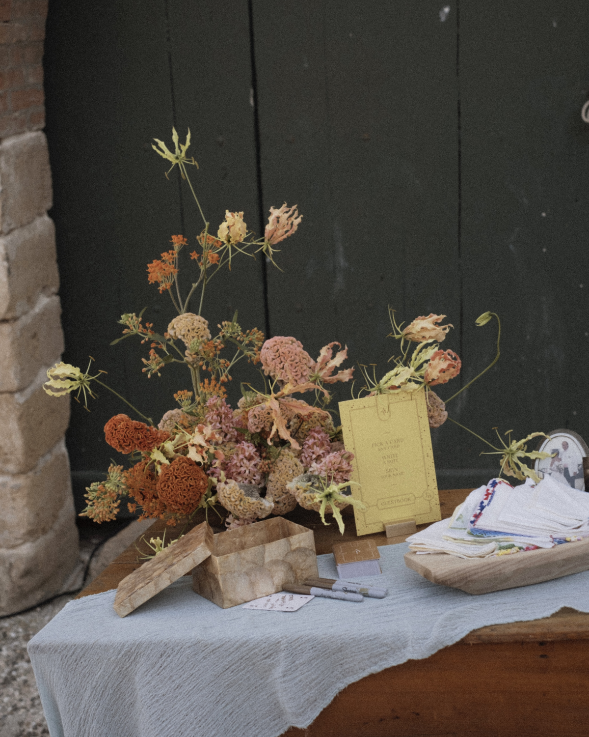 Become best friends with your planner. We loved every moment working with Cuckie from Gather Events, we felt like she really understood us, and we totally trusted her judgement. Lean into the experience in the areas you feel called to. We had so much fun personalizing many little details – our place cards and our petal bar – but only personalized moments that felt right to us. Be like Alvin and finish your vows before you arrive at your wedding destination!
