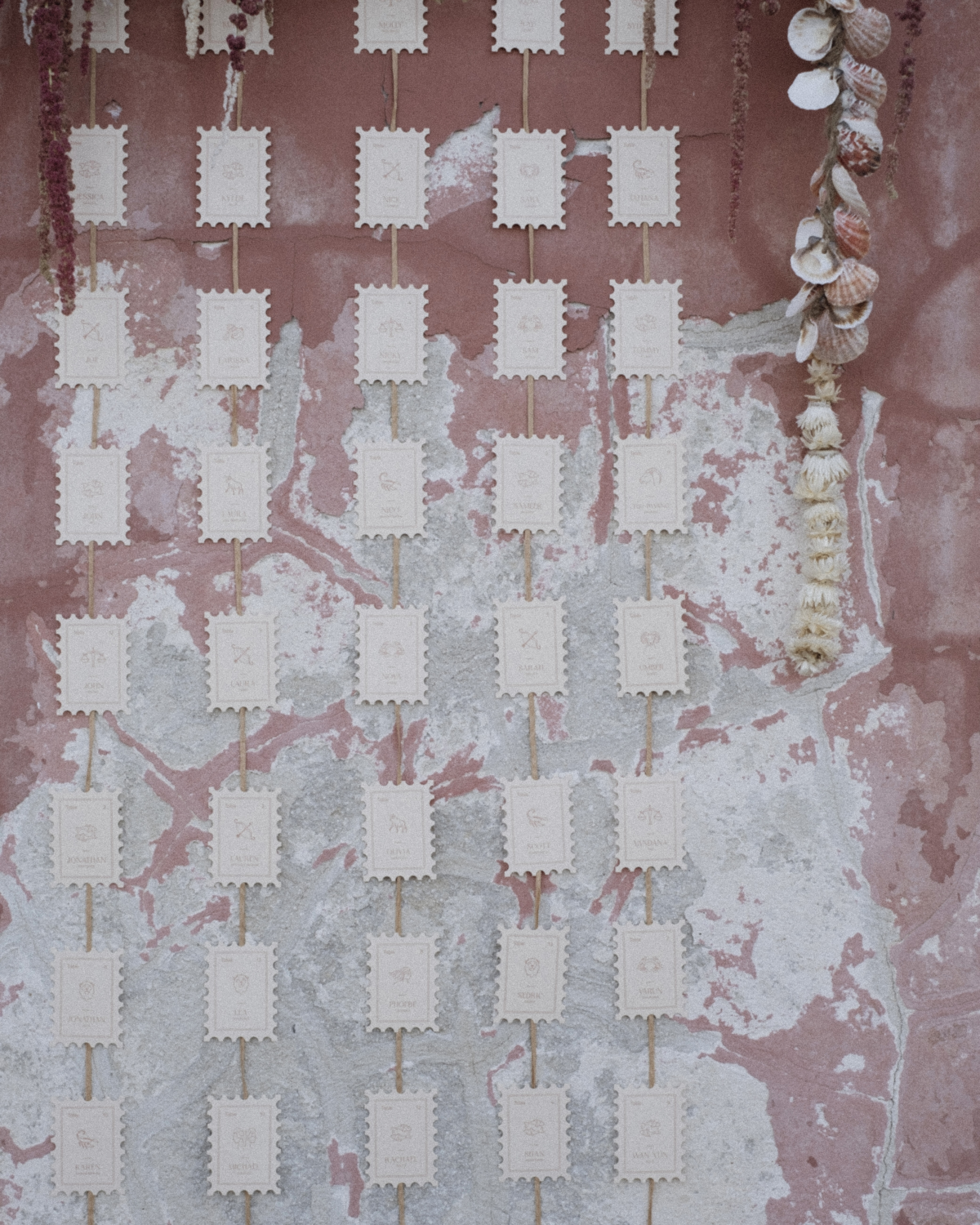 We have a magnificently fluffy Siberian cat named Cleo, who sadly wasn’t able to make the trip out, as her fur coat is far too thick for the hot Sicilian sun. We designed a few special touches to make it feel like she was there, including Birth of Venus inspired graphics with Cleo as Venus, which were printed on cocktail napkins and turned into a “Club Cleo” neon light for the wedding after-party.