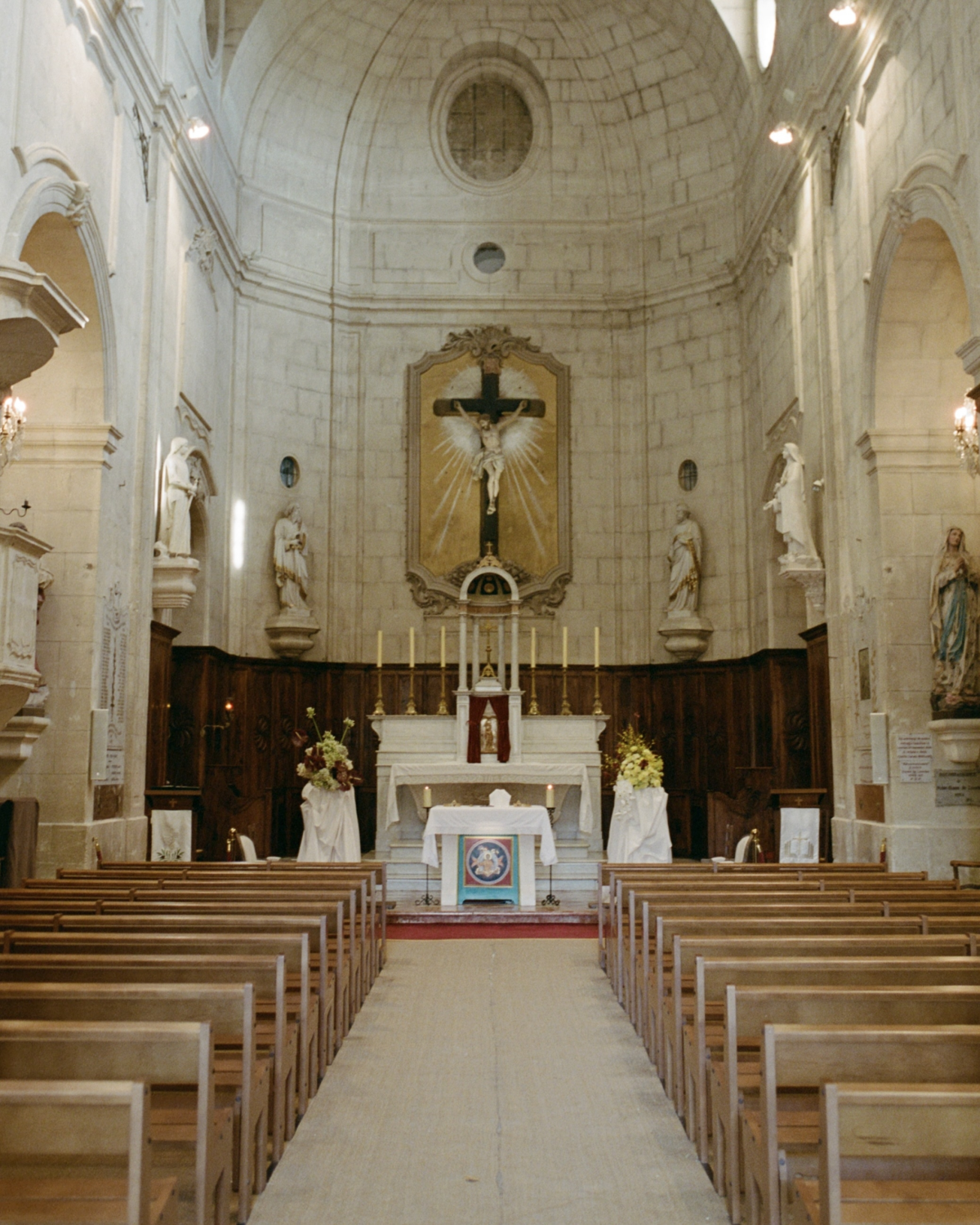 We got married in a beautiful Catholic church in the town of Maussane-les-Alpilles. We were so lucky to have three Armenian bishops and two Armenian priests leading our ceremony. We walked down the aisle as husband and wife to Kiss Me by Sixpence None the Richer—it made our wedding feel like the early-2000s rom-com of our dreams.