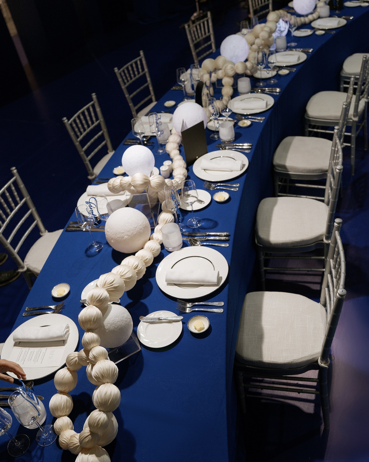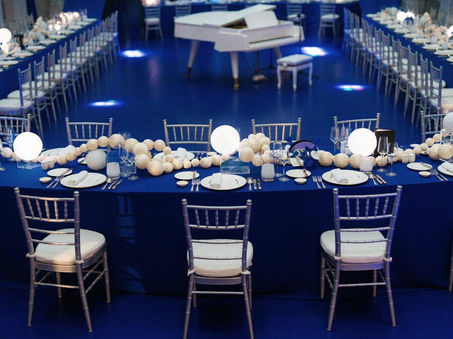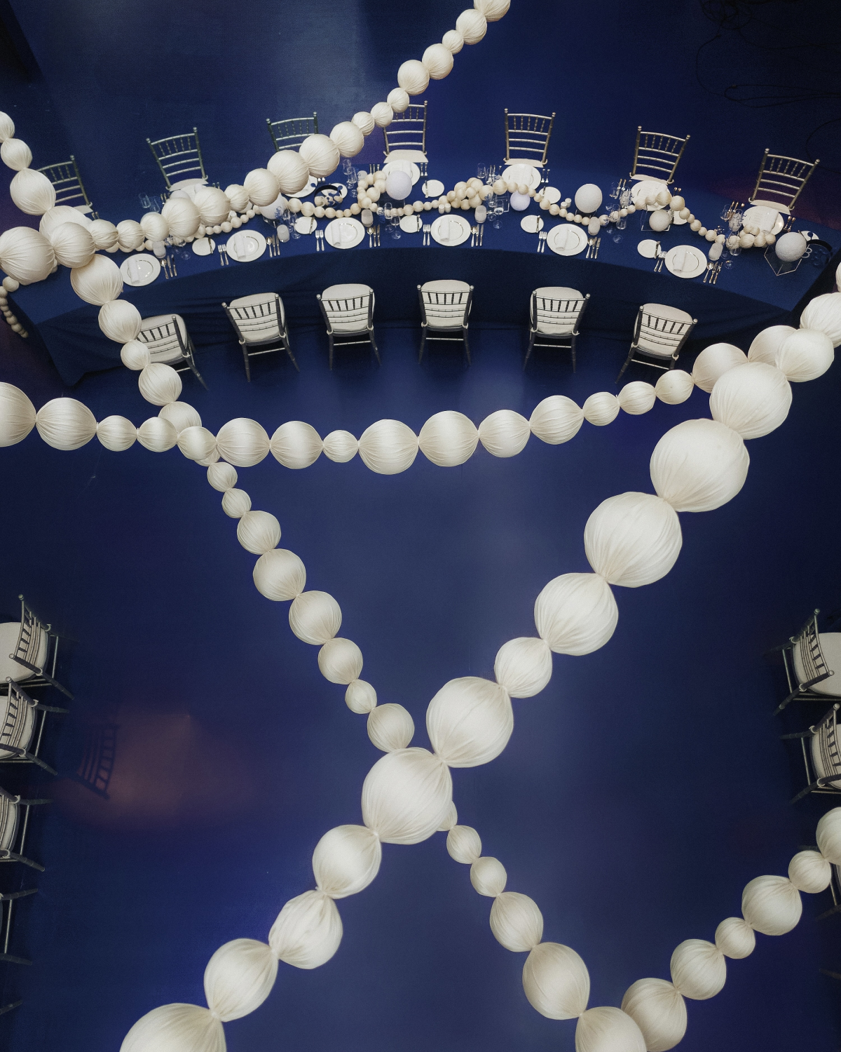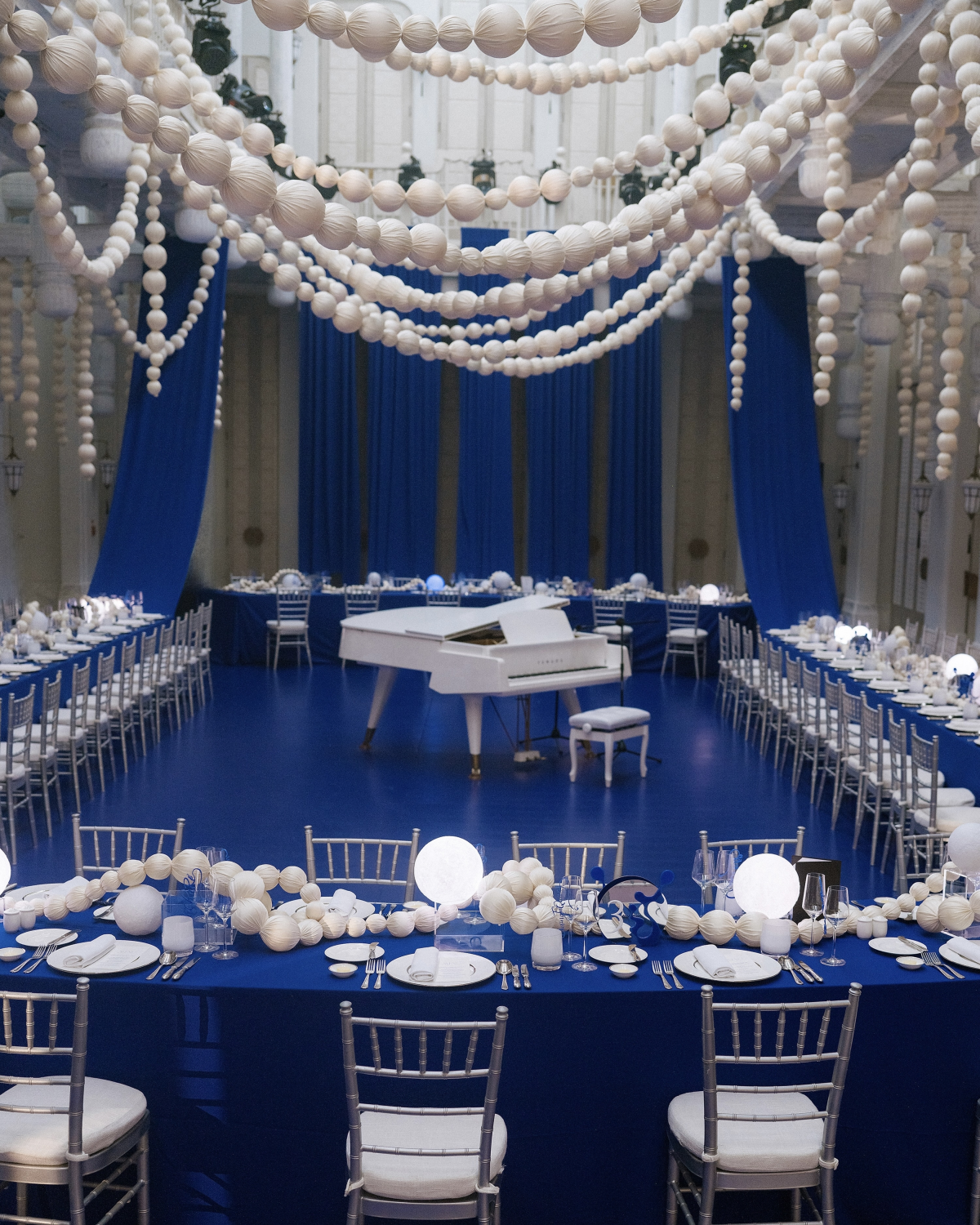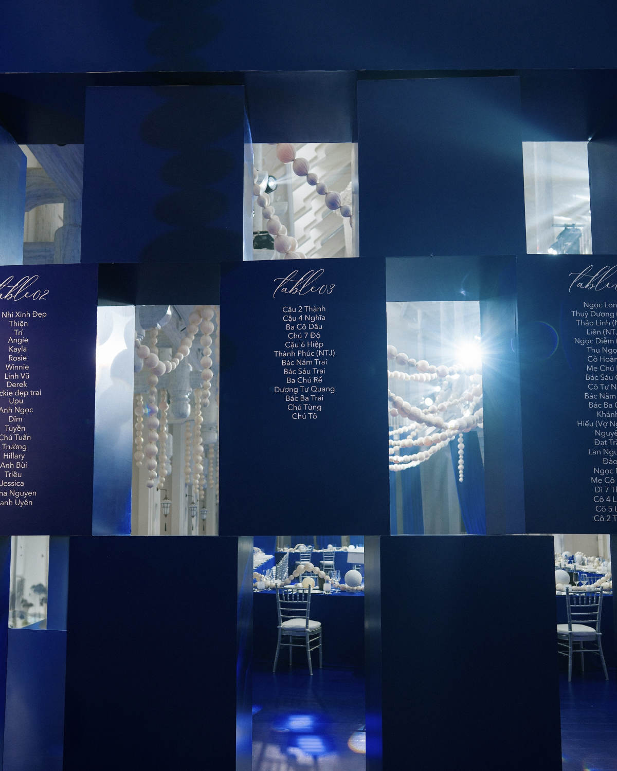 As a tribute to my name, Minh Châu (“bright pearl”), we reimagined the dinner as a poetic scene of floating pearls, suspended above the celebration like stars. On each table, strings of pearls drifted at the center, intertwining like threads of memory—an eternal symbol of connection.