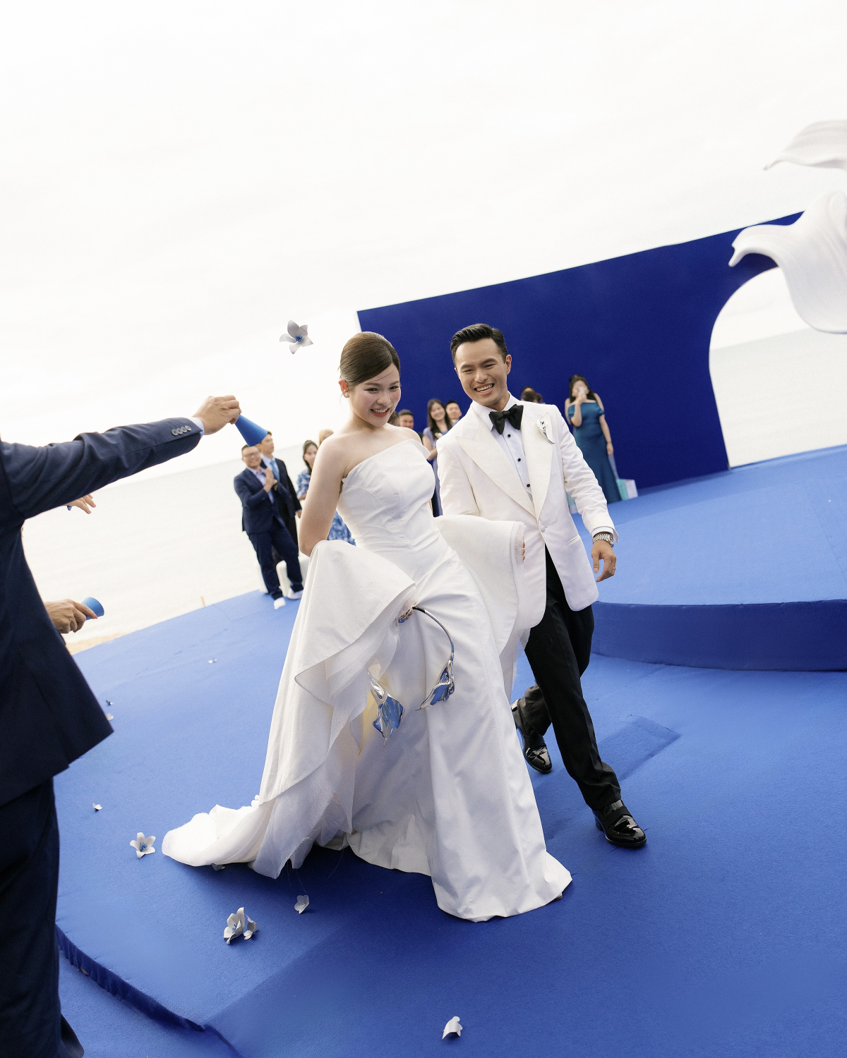 While many weddings speak the language of romance, few transcend into true artistry. Hieu and Châu’s Vietnamese celebration did exactly that – an extraordinary masterclass in imagination, intention, and curation. Built around a daring no-flower concept, their wedding redefined tradition with striking cobalt palettes, sculptural forms, and avant-garde details that echoed both art and architecture. Across three days, guests were immersed in a universe where design became narrative: pearls suspended like constellations above dinner tables, a cobalt stage rising from the shoreline, calla lilies standing alone as symbols of quiet strength. Every gesture, every element, was deliberate – shaping not just a wedding but a complete sensory journey, one that lingered long after the final toast. What made it unforgettable was not only the visual splendor but the emotion that flowed seamlessly through it all – proving that the most powerful designs are those that carry the weight of love within them.