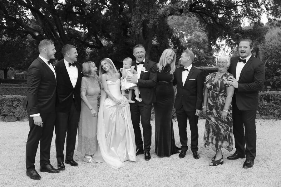 Keep the party going! We hosted a recovery pool party the next day, and it was one of the best decisions we made. Picture this: the most delicious Italian pizzas, endless beer and Aperol Spritz, all by the pool with a live sax and DJ setting the vibe. Everyone was in the best spirits, reminiscing about the night before—it was the perfect way to wrap up an incredible few days. Honestly, the longer you can stretch out the celebrations, the better. We also kicked things off with a welcome drink on our balcony at the Hassler Hotel’s 7th floor. It was the perfect way to bring everyone together before the big day, setting the tone for an unforgettable weekend. If you can, make a whole experience out of it—you’ll never regret more time celebrating with your favorite people!