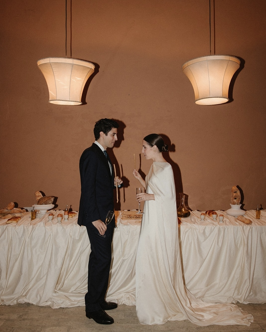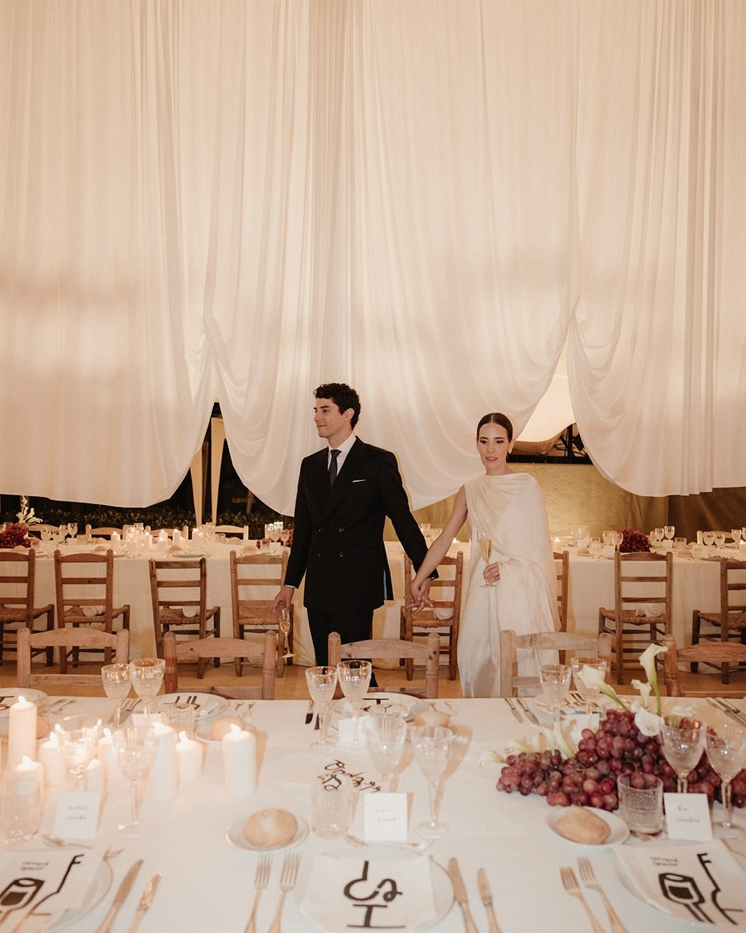 Some love stories unfold like poetry, weaving together art and heartfelt emotion. Carmen and Ignacio's wedding was just that – a celebration rich in meaning, beauty and personal touches. Set against the stunning backdrop of an old palace in Seville, their special day was a seamless blend of minimalism and authenticity. From the moment guests arrived, they were transported into a living art gallery where every detail was carefully curated to enhance the purity of the space. At the reception, a chic bread and olive oil grazing table draped in flowing fabric invited guests to savour the flavours of Spain in the most stylish way. Every element of their wedding was a tribute to their heritage, their love and the art of bringing people together.