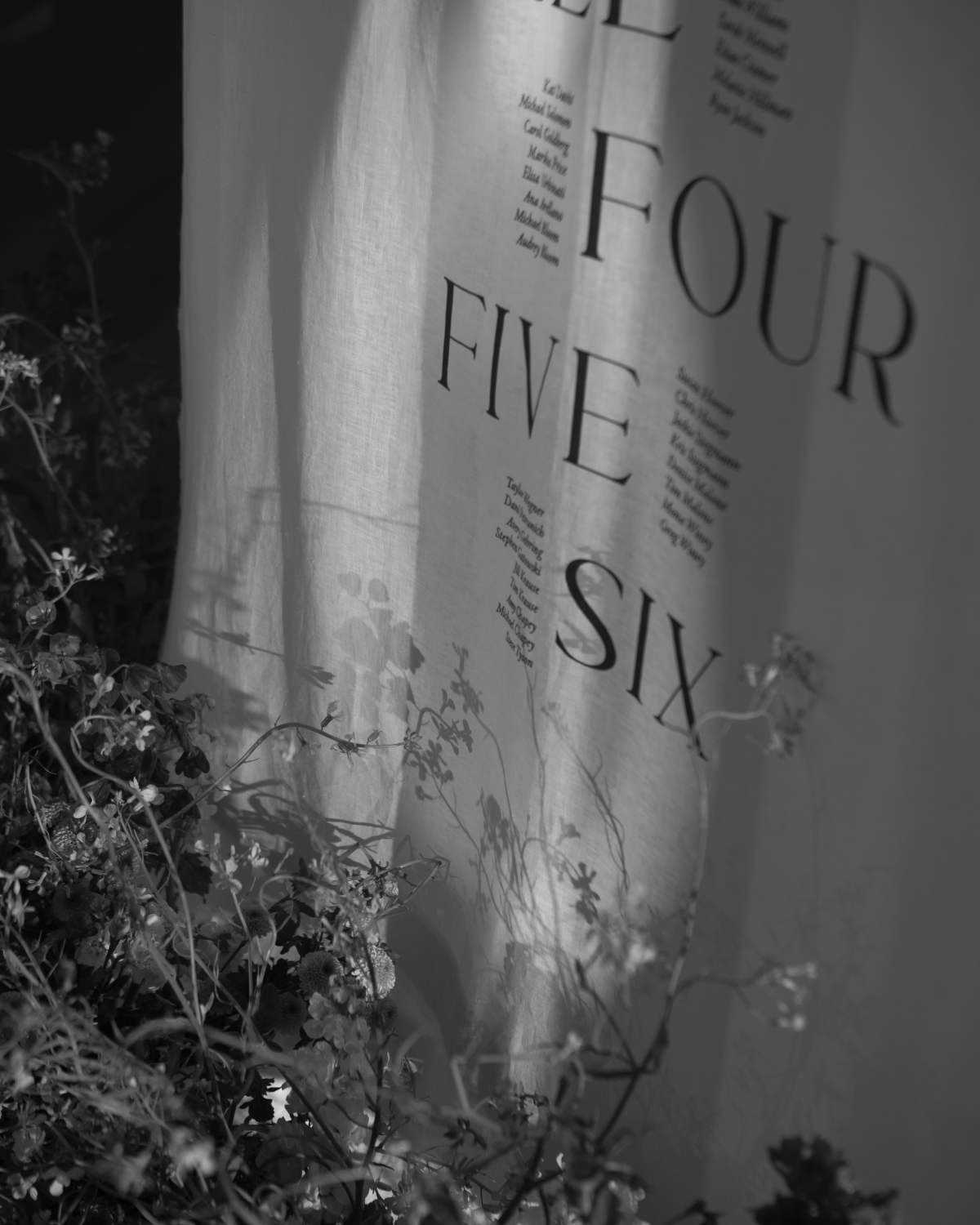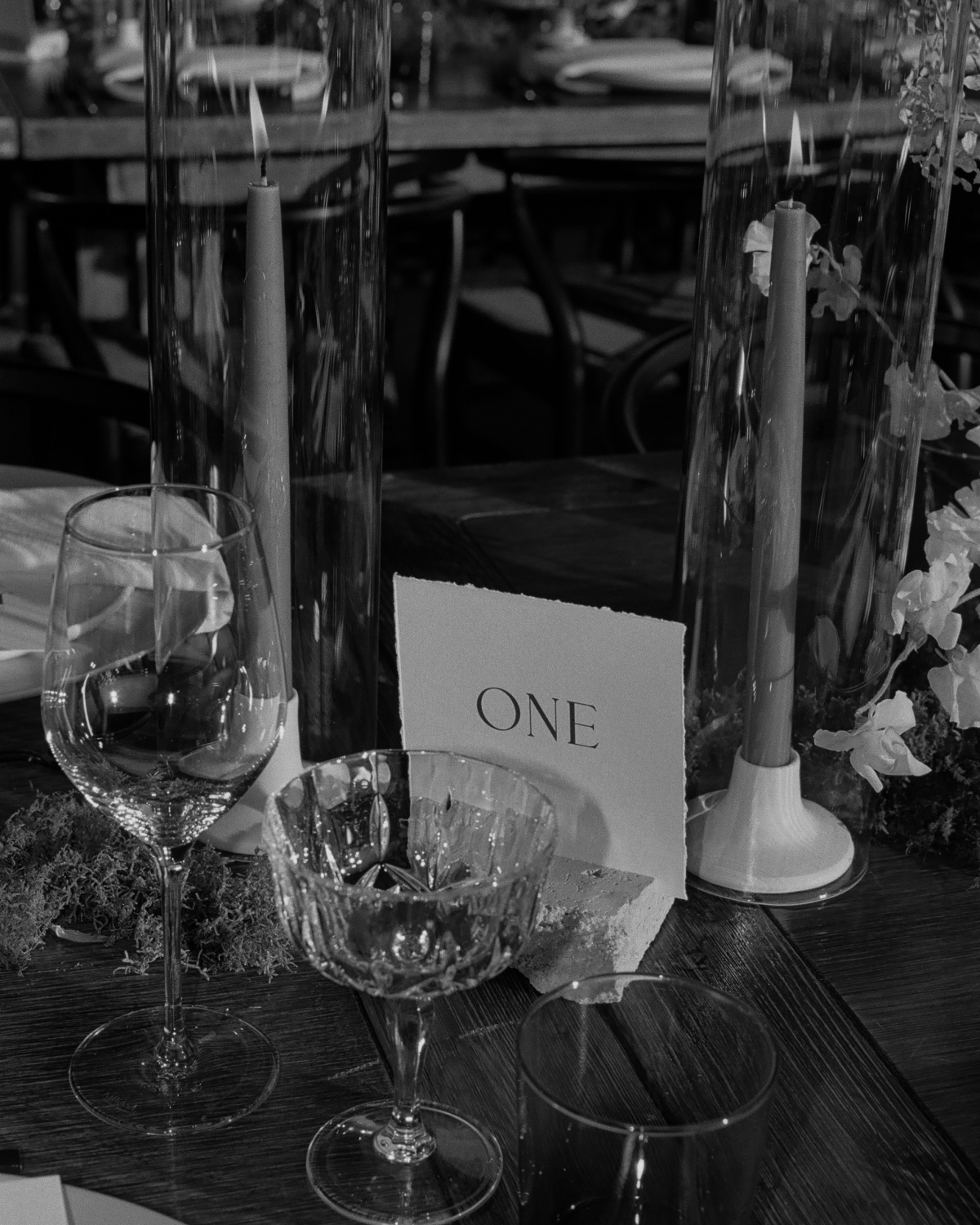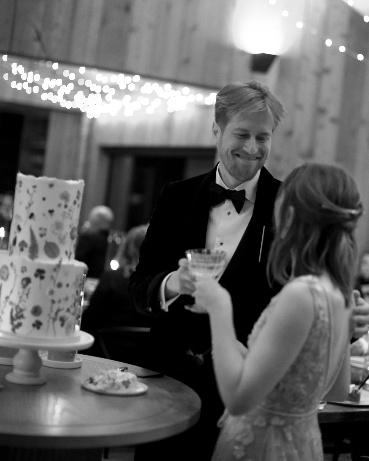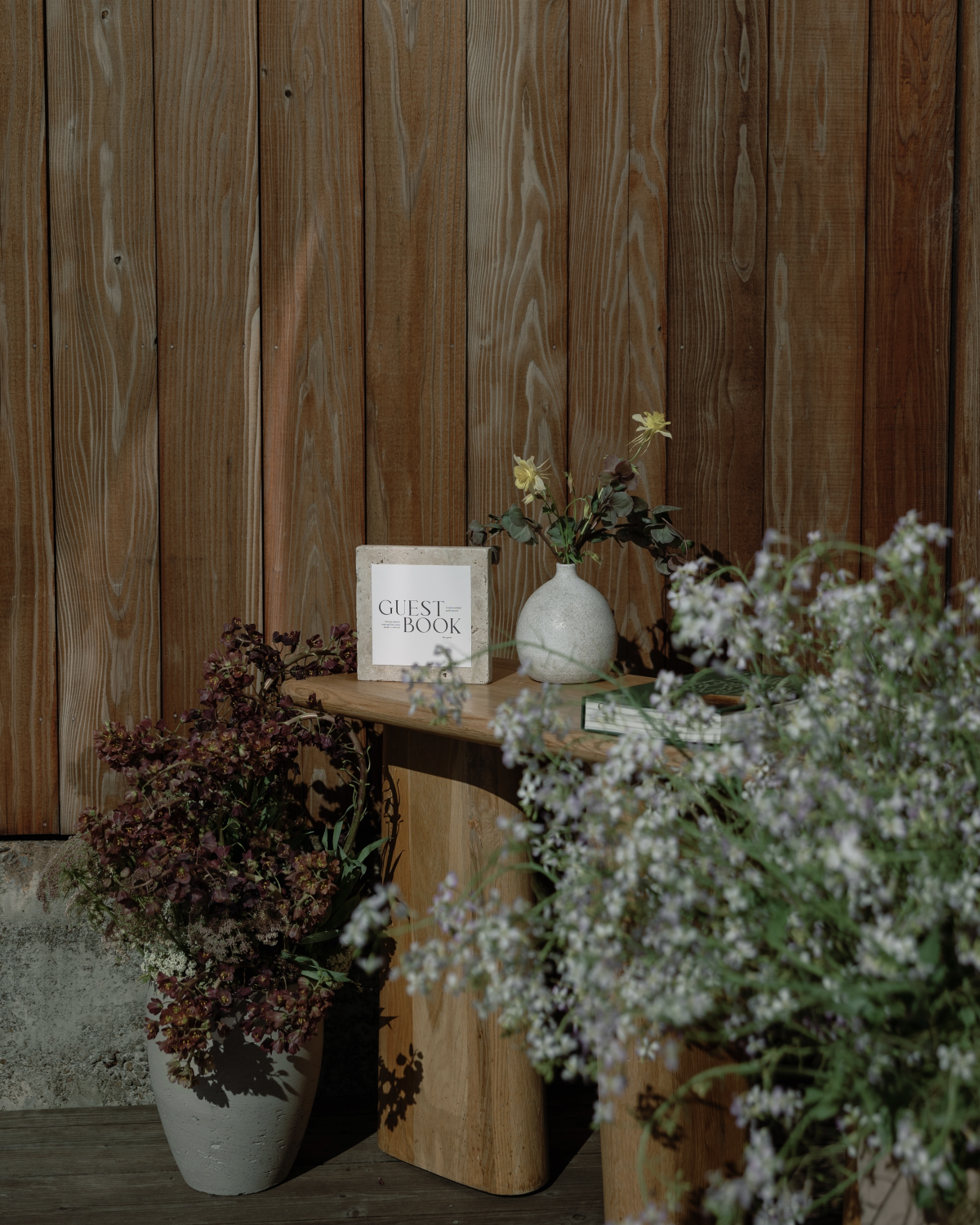We wanted to find a happy medium between wild and natural, and sleek and modern. I think the words I first used for our planner were “ethereal and cool girl.” It was also very important to us to have an aesthetic that flowed seamlessly into our venue, so we prioritized local flora, textures, and colors that blended into the natural landscape. Similarly, we chose a typography style for invitations, signage and menus that complimented the architecturally modern lodge. The venue itself was so stunning, so our goal was to create an environment that emphasized and enhanced what was already there.