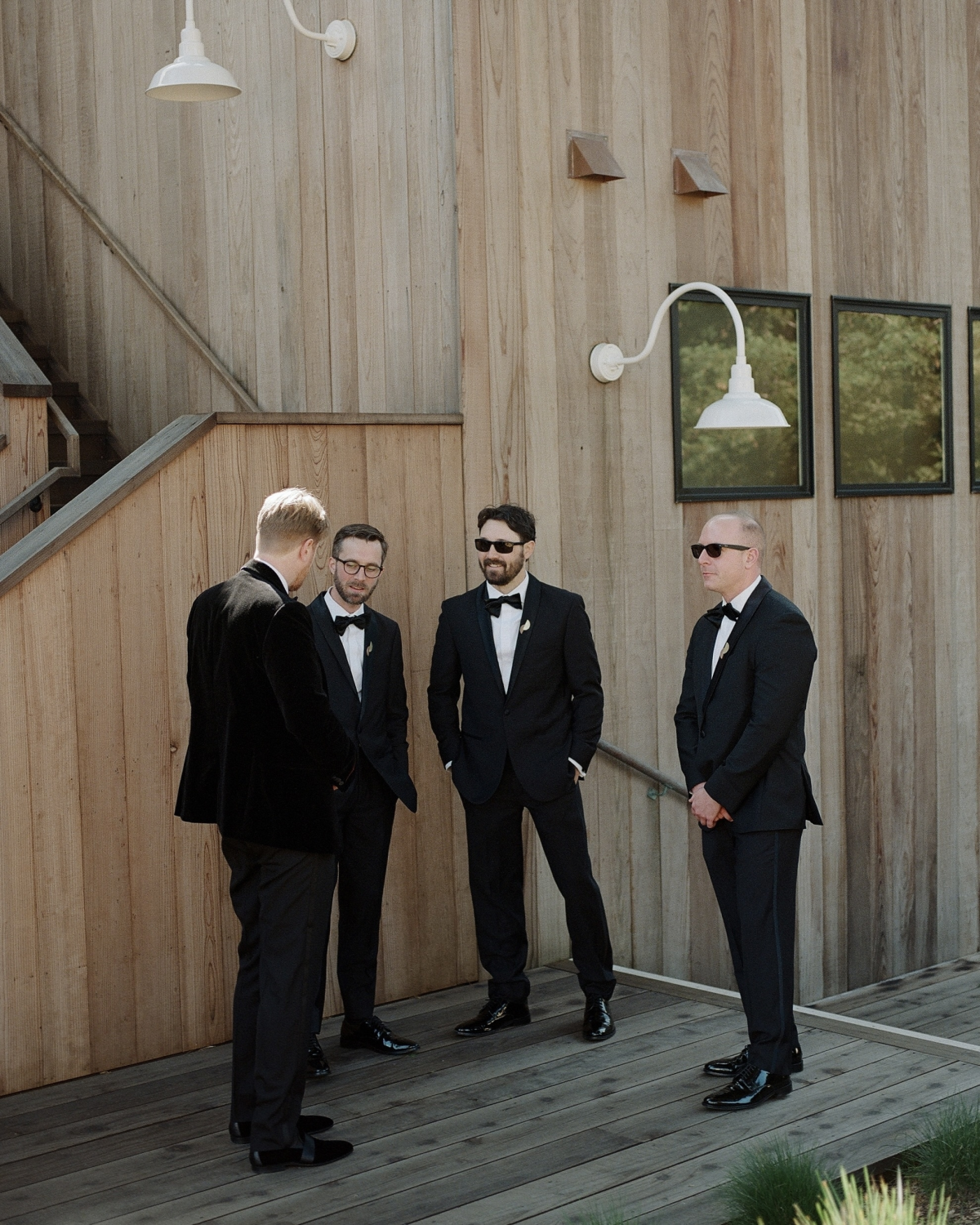 Matthew wanted something completely classic and timeless, with a little pinch of unique energy. We went with a custom-made Ralph Lauren tux with a black velvet jacket, which had a lining that matched the bridesmaids.