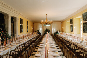 In the heart of the rolling Chippenham countryside, friends and family journeyed from all corners of the world to a charming English manor, gathering to celebrate the love shared by Joshua and Charlie. The ceremony began by a tranquil lakeside, unfolding like a page from a storybook. The grooms, in elegant Tom Ford and Alexander McQueen, descended the staircase with their mothers close behind, each step rich with sentiment and grace, a moment suspended in time. The reception that followed was nothing short of enchanting. Beneath delicate drapery and the soft glow of countless candles, the room came alive with a warm, timeless beauty, casting an inviting glow over loved ones as they dined and danced. More than a wedding, Joshua and Charlie’s day was a radiant celebration of connection, joy, and enduring love – a true fairy tale come to life. Join us as we step into this unforgettable chapter of their story.