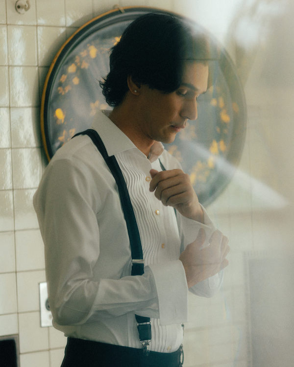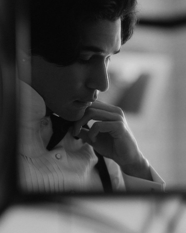 Taylor wore a Dries Van Noten tuxedo paired with a Gucci bow tie, Jil Sander derbies and a vintage Tank Louis Cartier from the 70s.