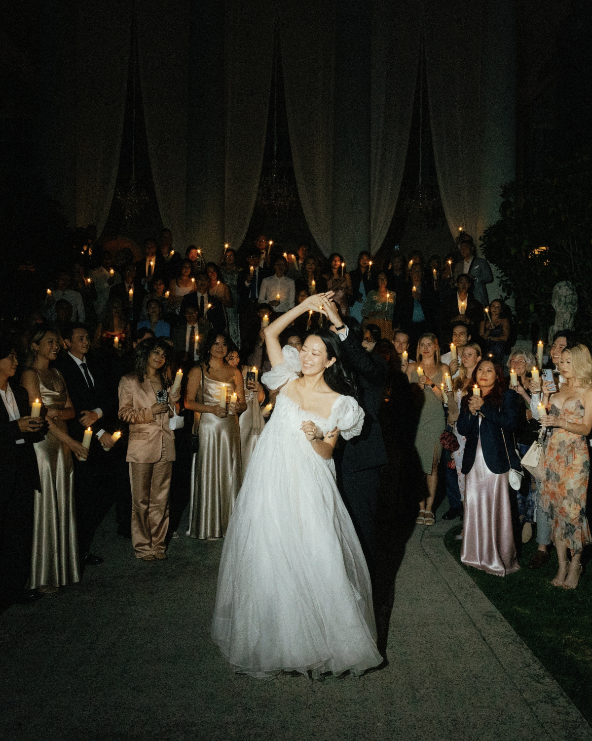 Our favorite moment of the day was our first dance. As dessert was finishing up, we asked our guests to bring their table candles over to the outer terrace. Funnily enough – Hycroft had a no open flames allowed policy given that they were a historical building, so these were actually LED, which made it safer for people to hold. Our guests filled up the surrounding staircase as we danced to a rendition of Moon River by Frank Ocean.