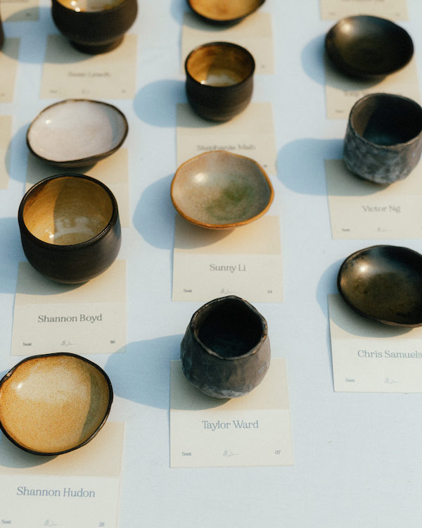 We both love making things, and so our wedding felt like a perfect opportunity to make something meaningful for the people who matter the most to us in our lives. Because of how much we’ve moved, it’s quite rare for us to have all the people we care about all together in one space. In the months leading up to the wedding, Taylor and I made a set of 100 ceramic pieces, from cups to small dishes, at the studio we go to in New York and brought them with us to Vancouver. Our carry-ons were pretty much just our wedding outfit, and all of these ceramics were carefully wrapped in paper. In the weeks leading up to the wedding, we laid out everything on the kitchen floor of my parent’s house and decided which piece suits which guest.