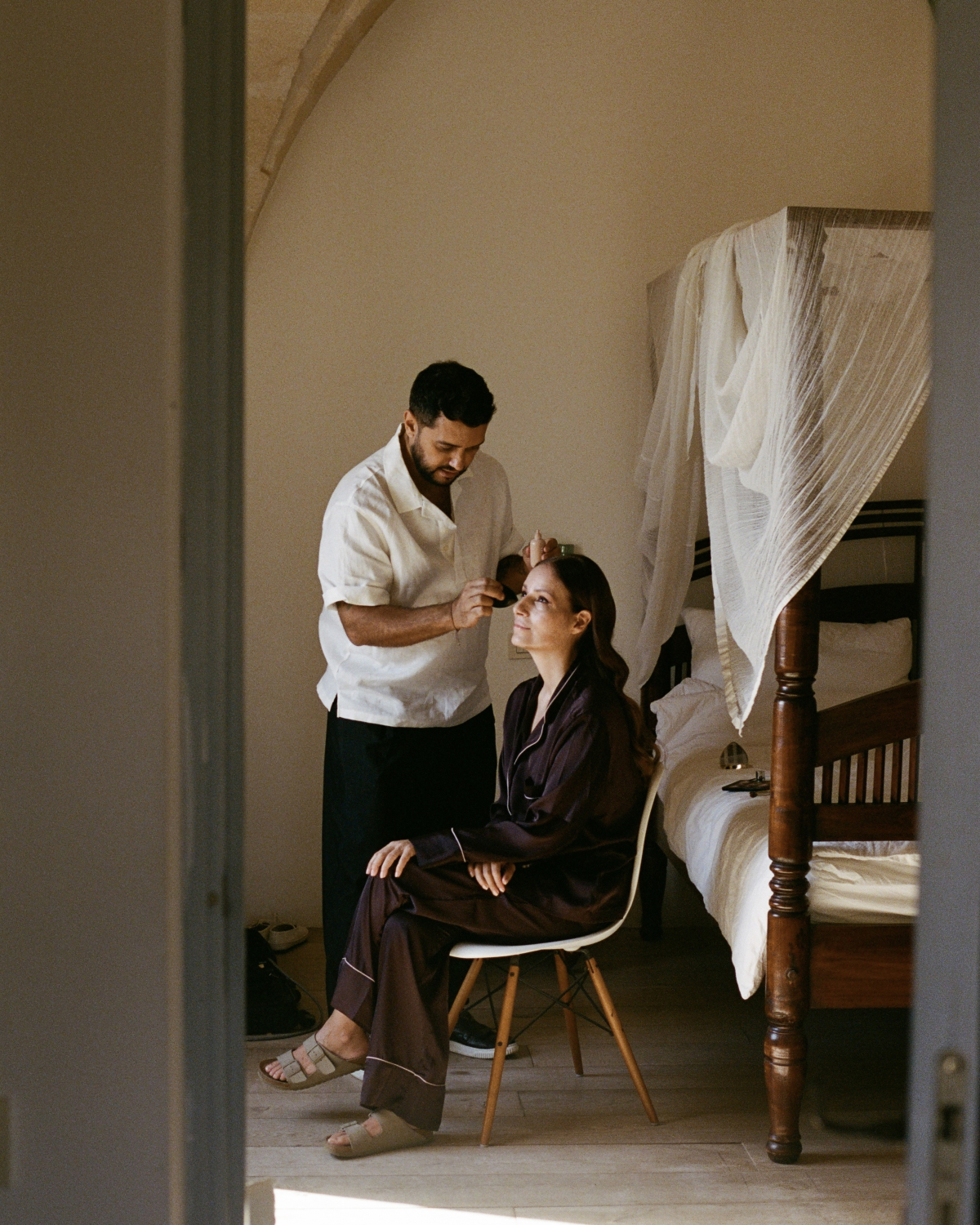 We met in Puglia, Italy, at a wedding where we were both working. We spoke briefly, and almost a year later, we reconnected by chance on social media. From that day on, we were inseparable. Currently, we live between Italy and Portugal, as our work allows us to.