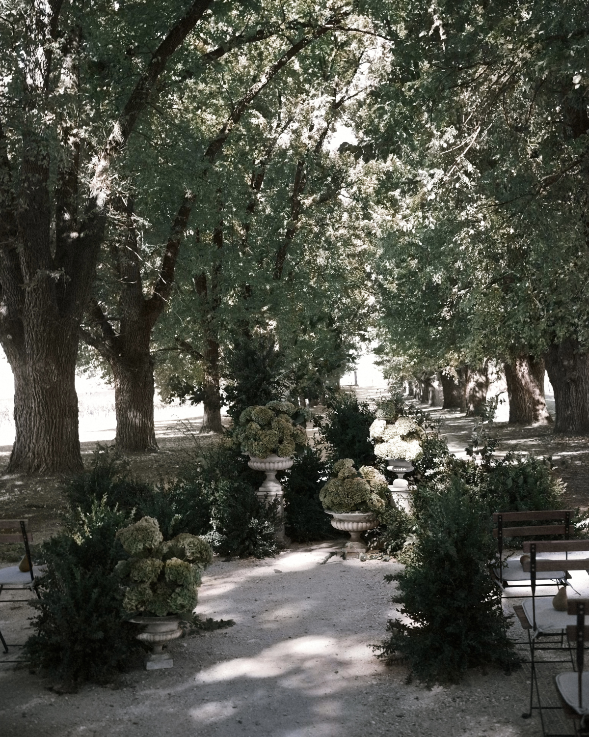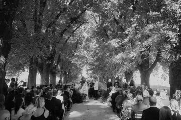 Our wedding ceremony took place along the iconic driveway at All Saints Estate, surrounded by 150-year-old elm trees.
