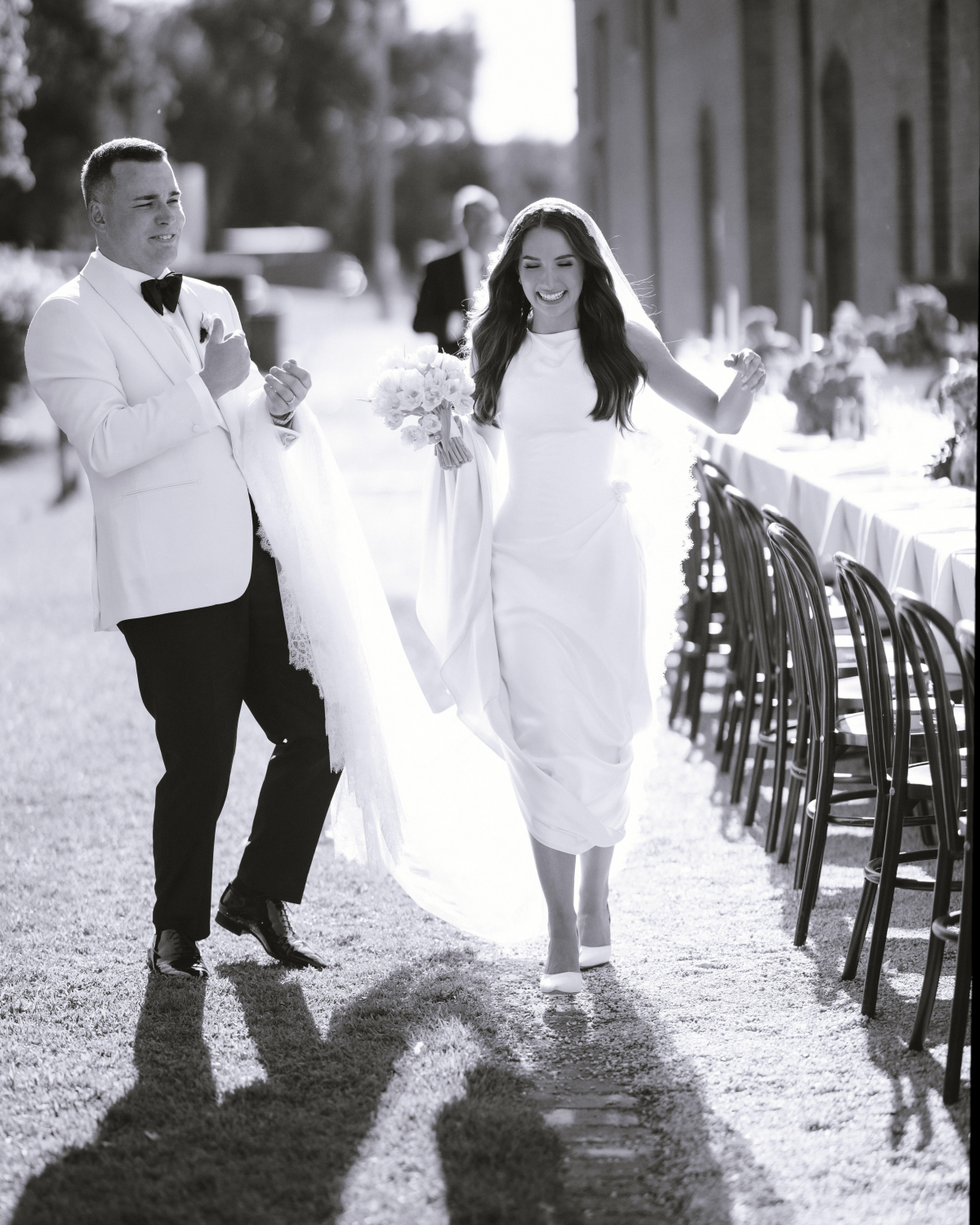 A celebration of love that felt as intimate and personal as it was breathtakingly beautiful – the perfect description of Ali and Lachie's wedding. Immersed in nature and inspired by a European al fresco atmosphere, their special day unfolded at All Saints Estate – a historic gem in Australia's picturesque Rutherglen wine region. The ceremony took place on the estate's driveway, surrounded by majestic 150-year-old elm trees. Following this heartfelt moment, guests gathered outside the castle for a magical dinner under the stars, where the fresh air, open skies and timeless beauty of the setting created an unforgettable atmosphere. Ali, radiant in a bridal gown by Elly Sofocli, epitomised elegance and modern sophistication, while every detail of the day reflected the couple's shared love of nature, connection and understated luxury.